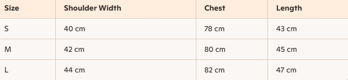- Size : S, M, L