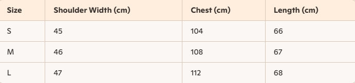- Size : S, M, L