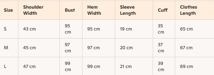 - Size : S, M, L