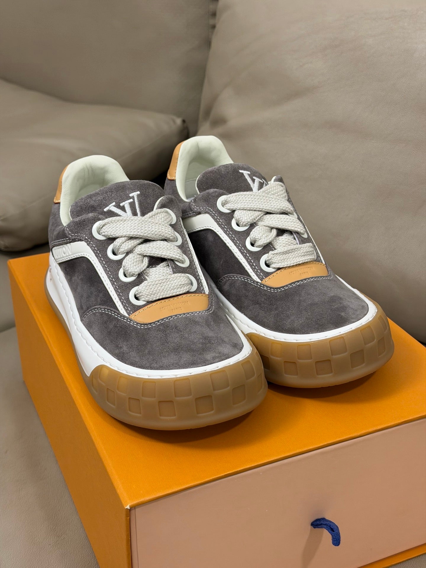 LV 25 Oversized Sneakers Gray Suede 576956