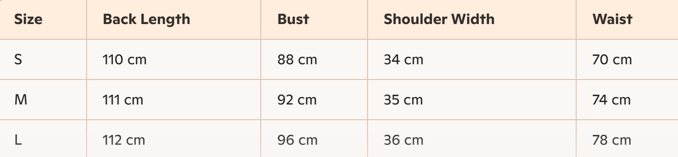 - Size: S, M, L