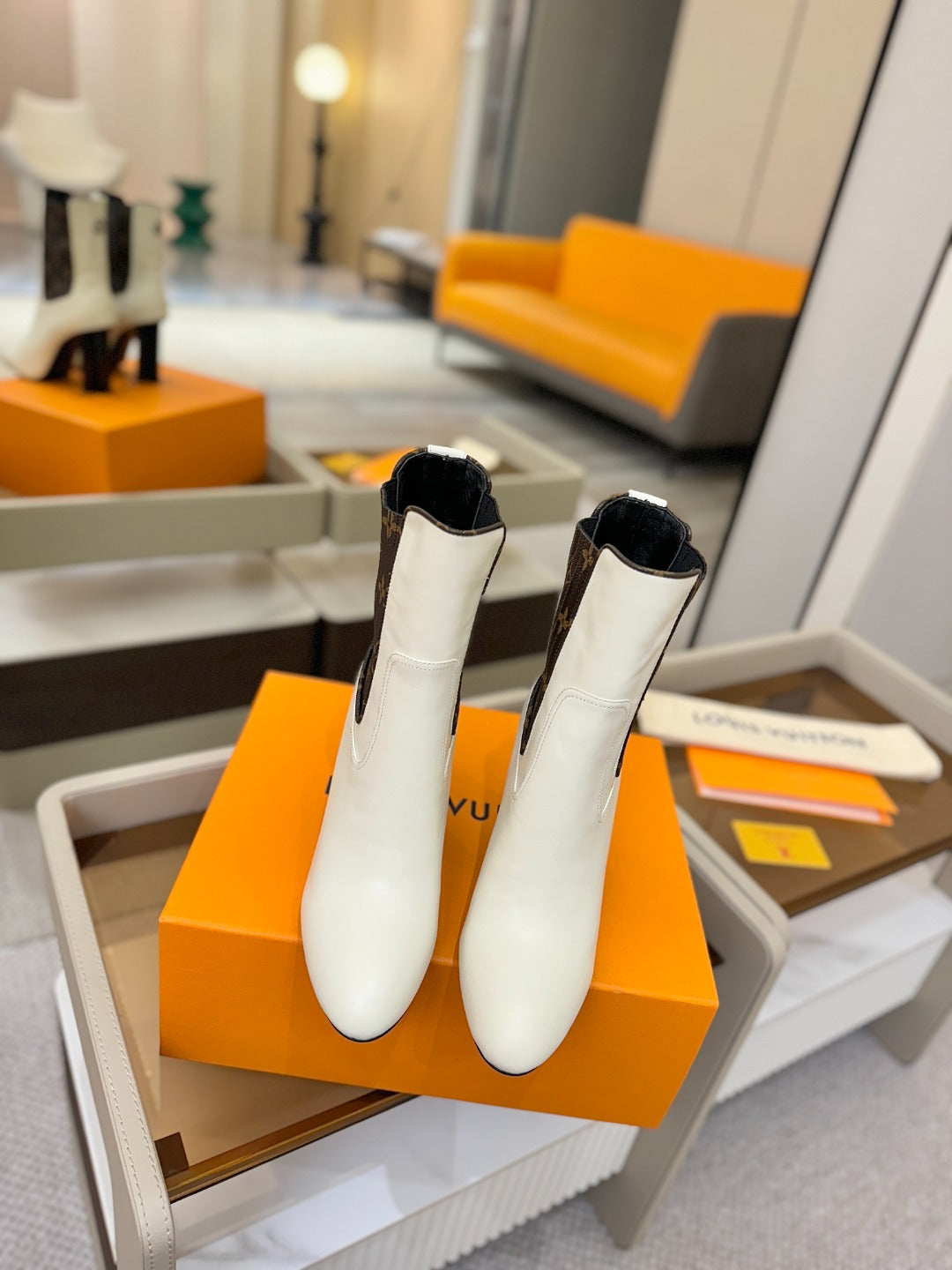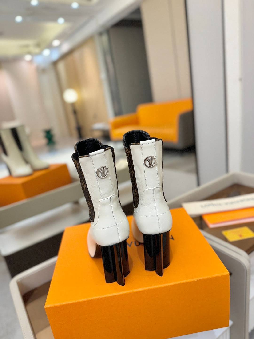 LV 25 Runway Ankle Boots 95 White Monogram Brown Calfskin 573858
