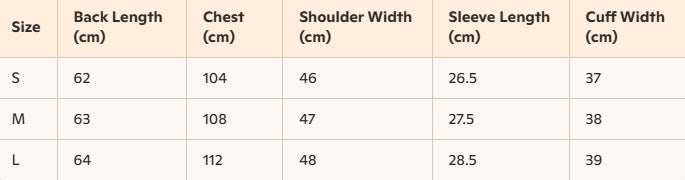 - Size : S, M, L