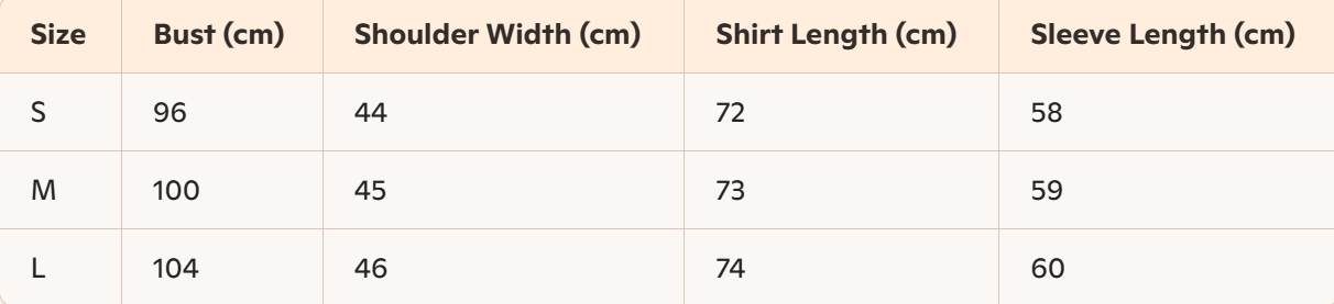 - Size : S, M,L