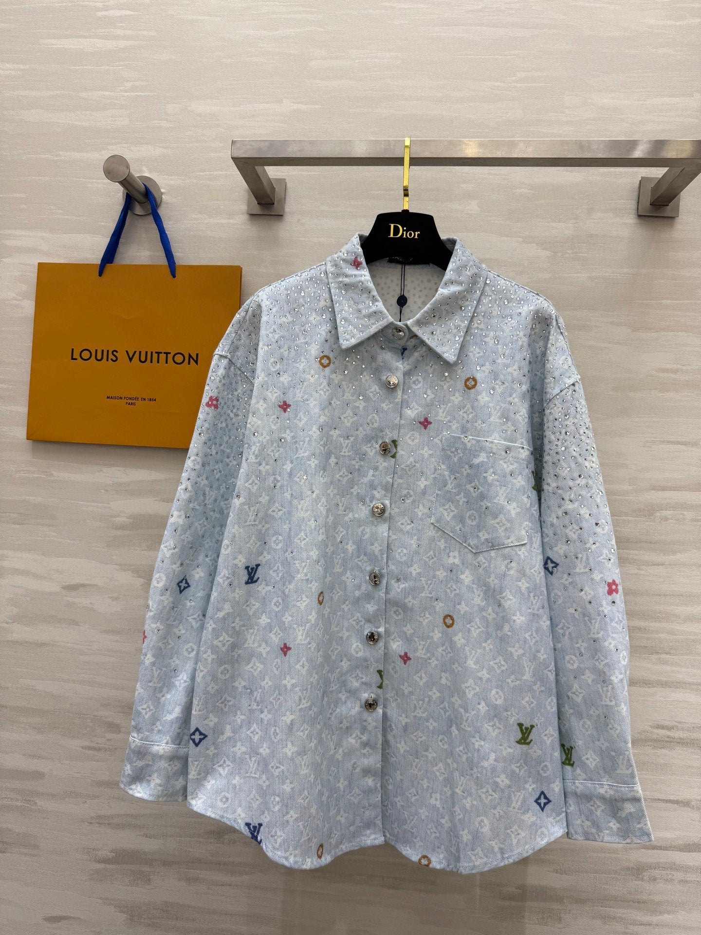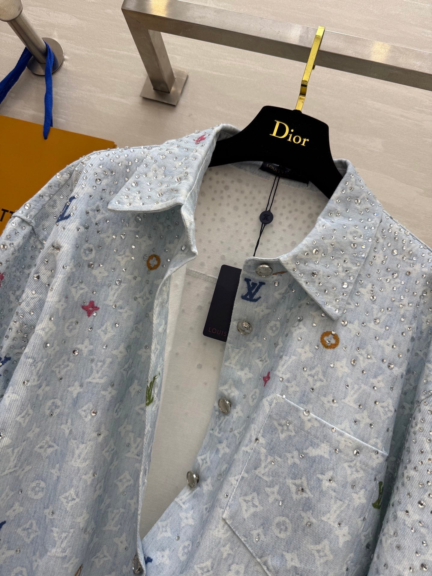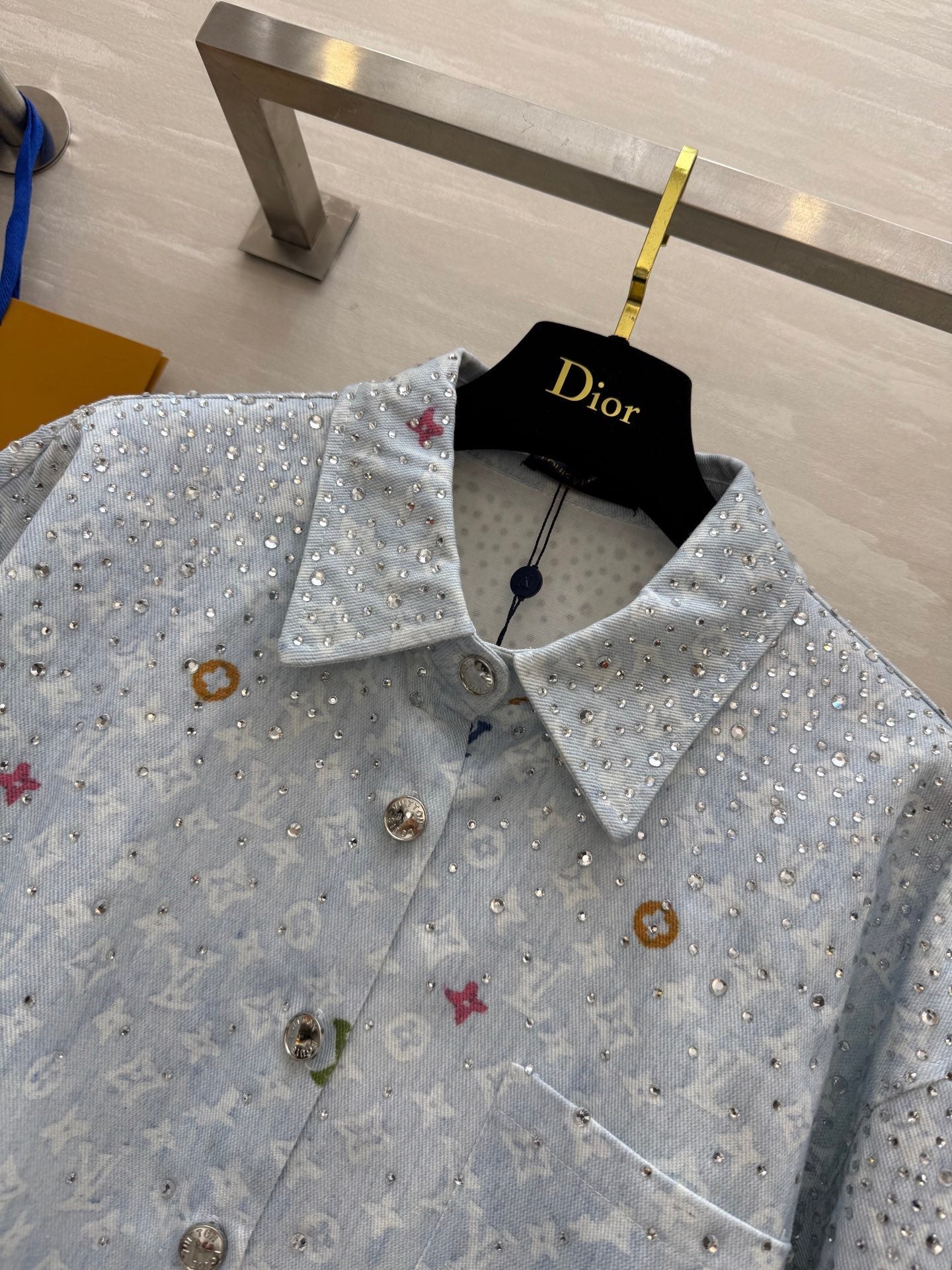 LV 25 Star-Studded Rhinestone Light Blue Denim