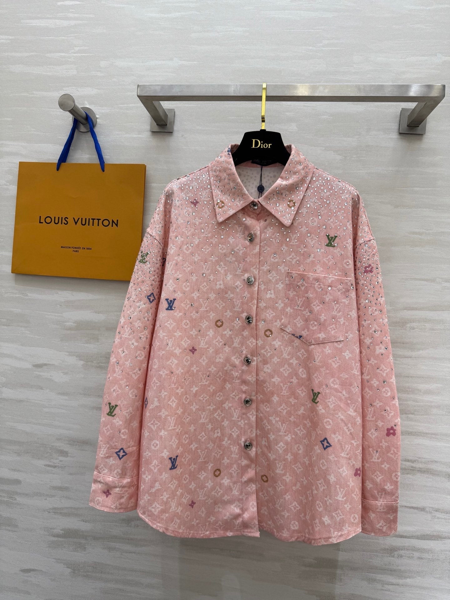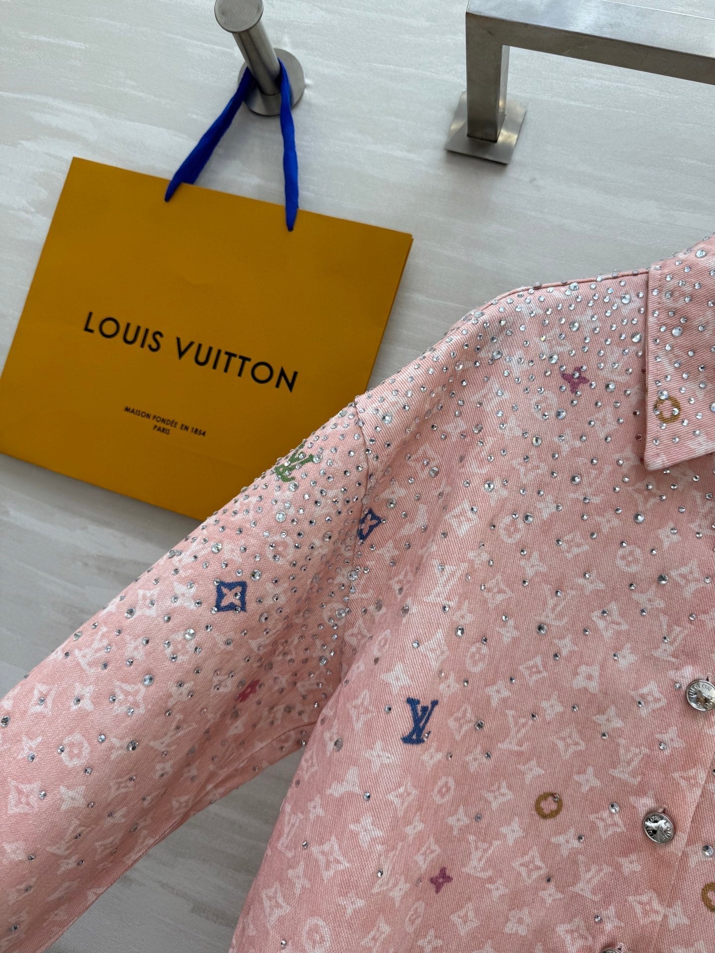 LV 25 Star-Studded Rhinestone Pink Denim
