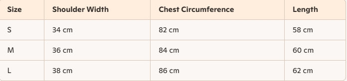 - Size : S, M, L