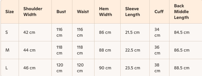 - Size : S, M, L