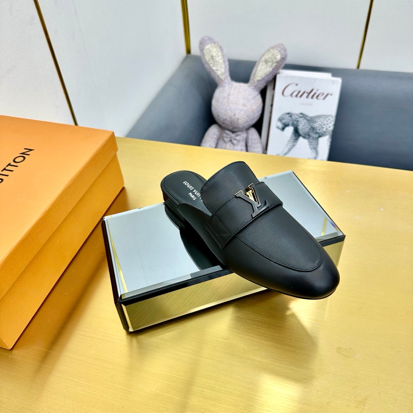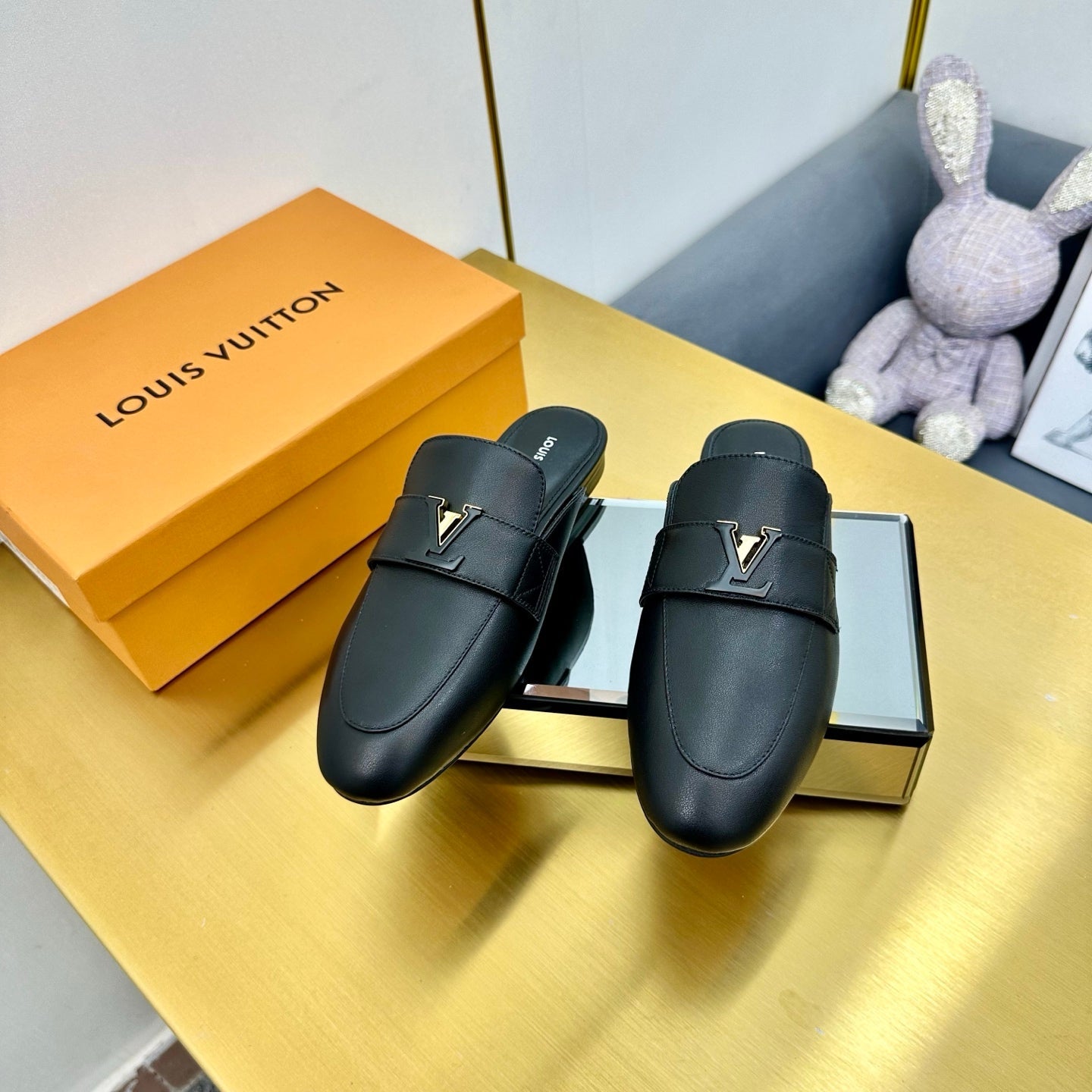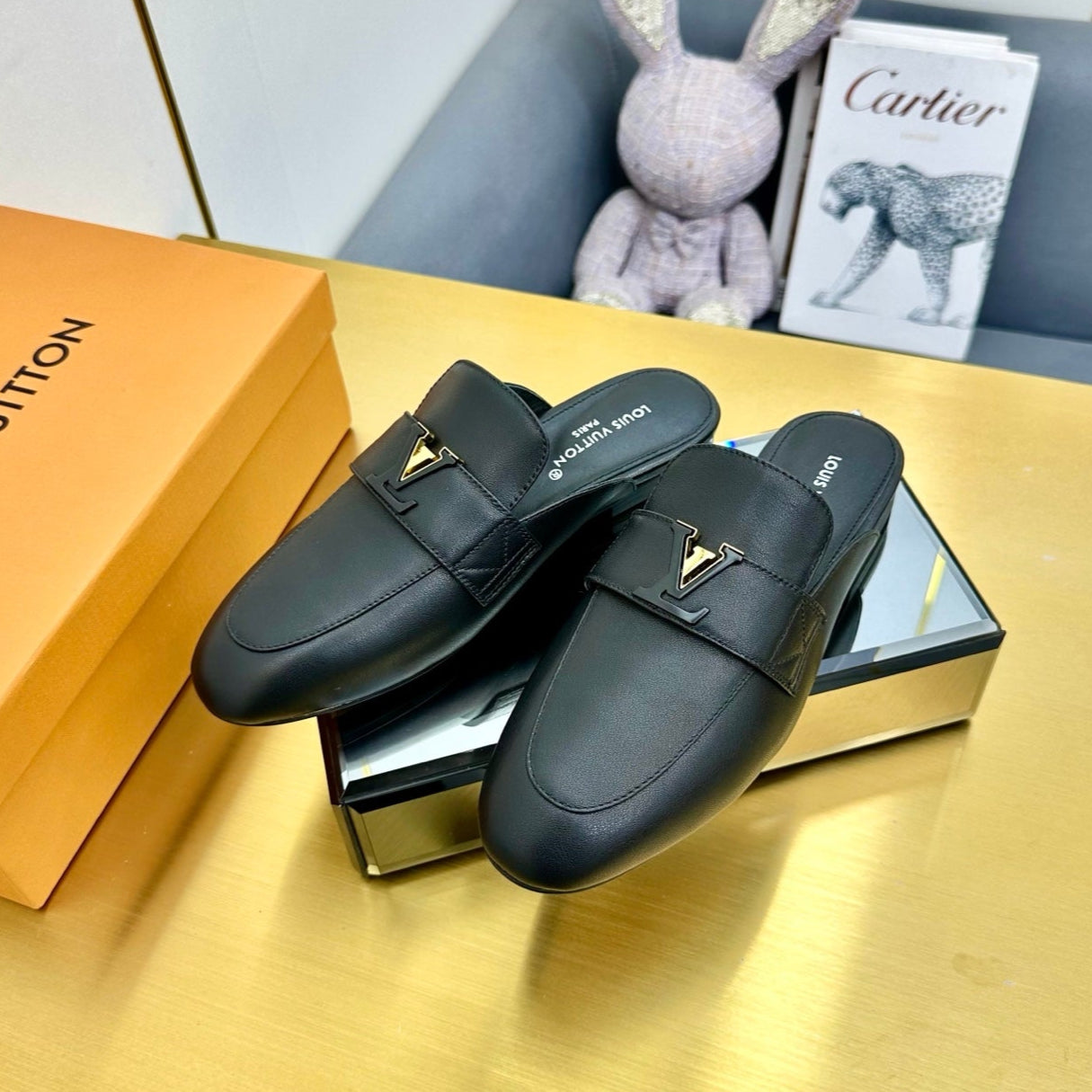 LV 25C LV Capri Open Back Loafer Black Cowhide 219928