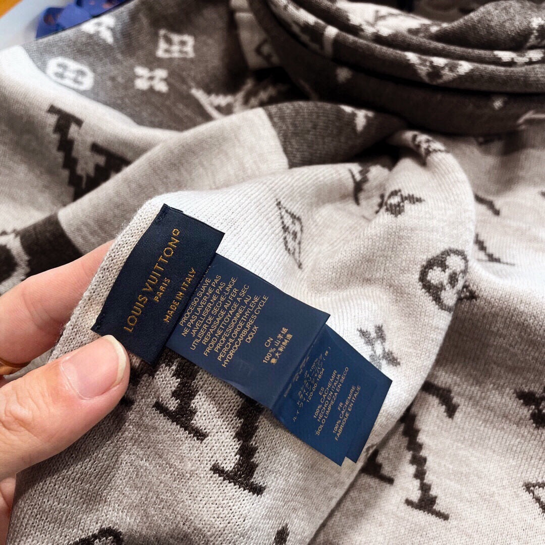 LV 25s Scarf 200cm Brown Light Gray Cashmere 973133