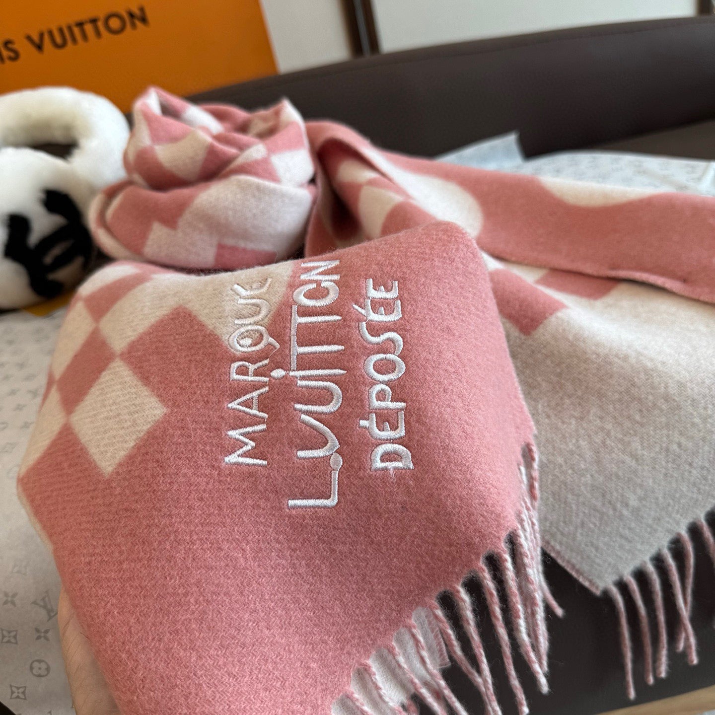 LV 25ss Scarf 180CM Pink White Knitted Cashmere 292796