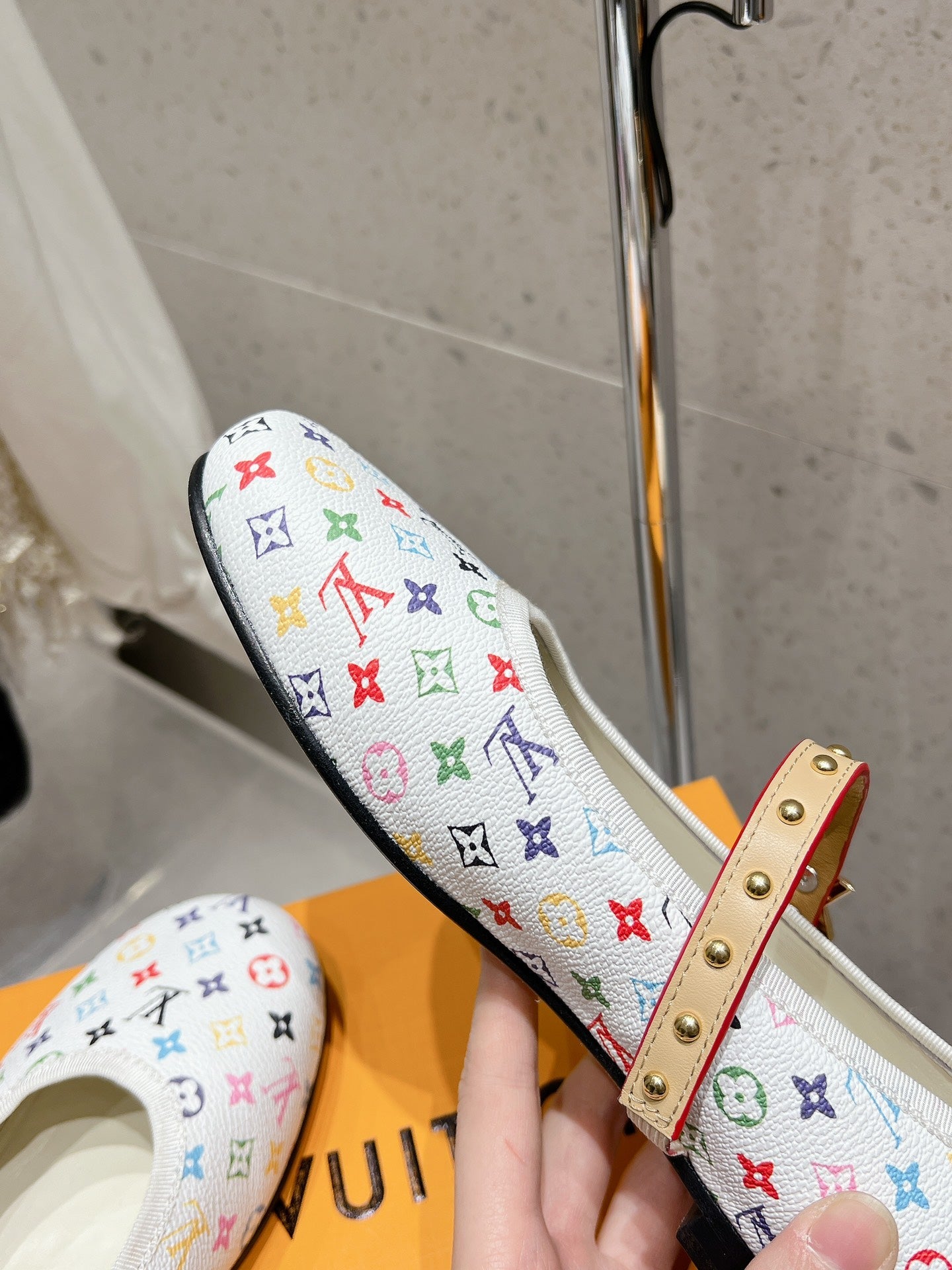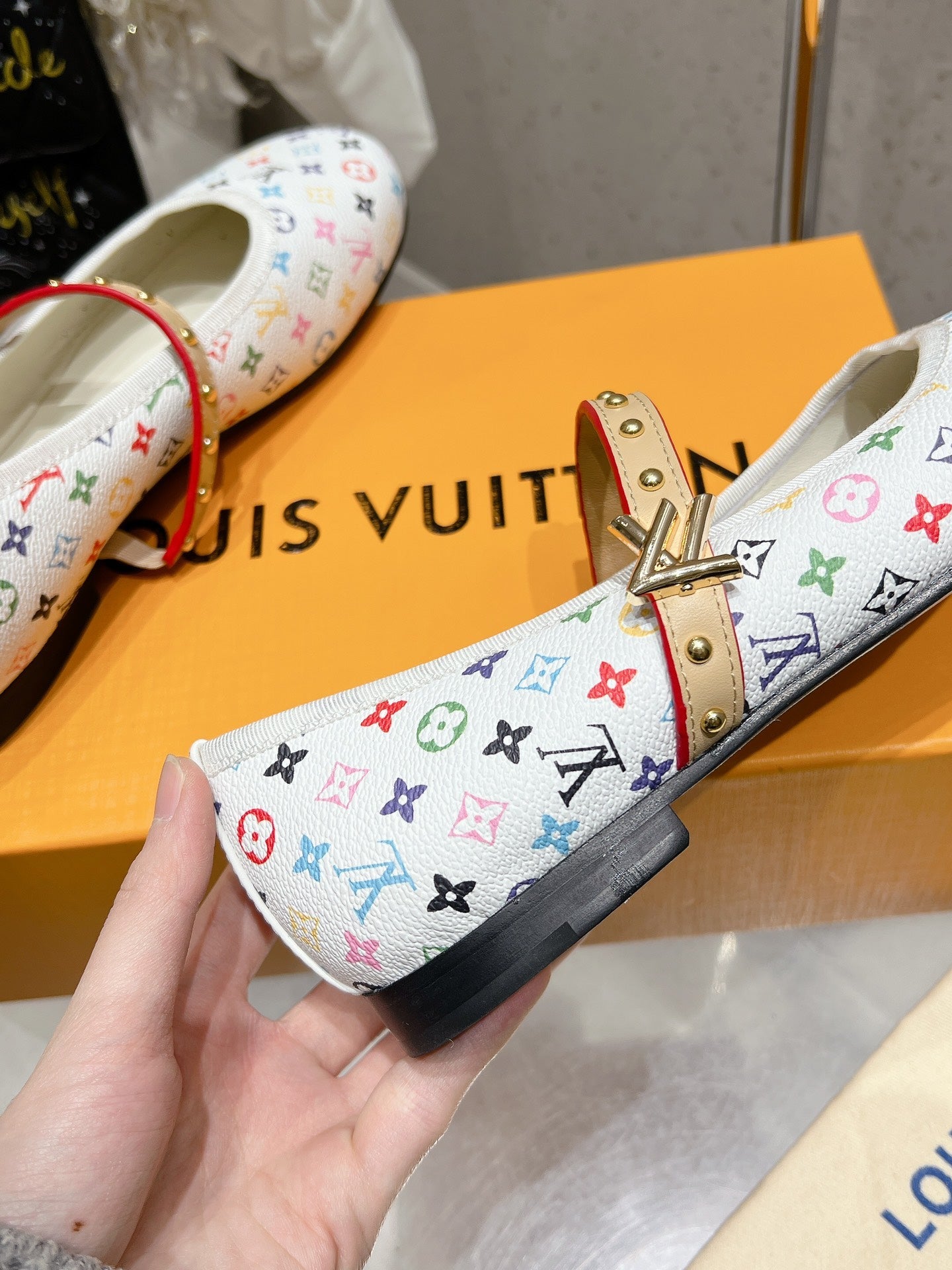 LV 26s Ballet Flats White Multicolor Monogram Leather 610842