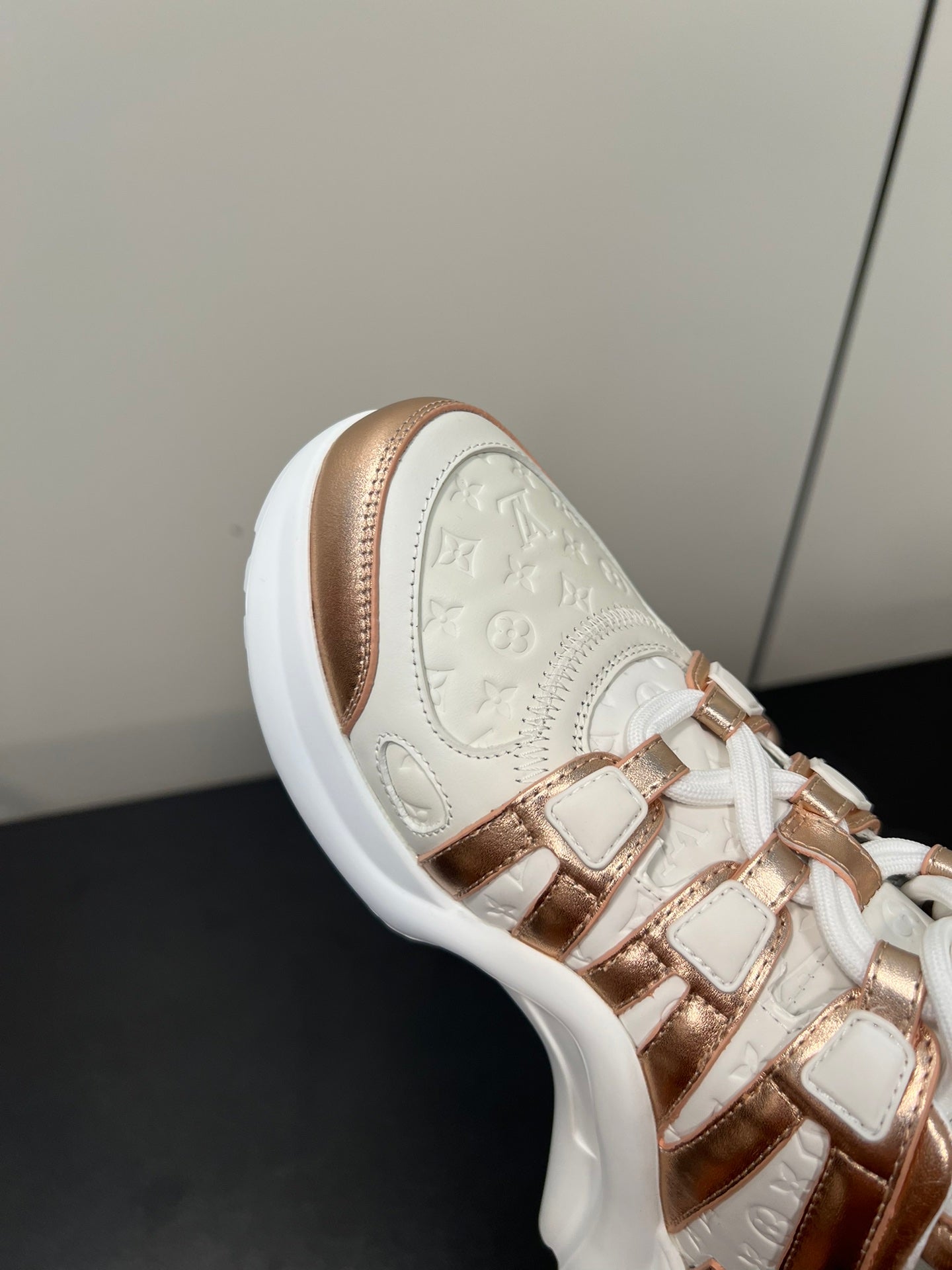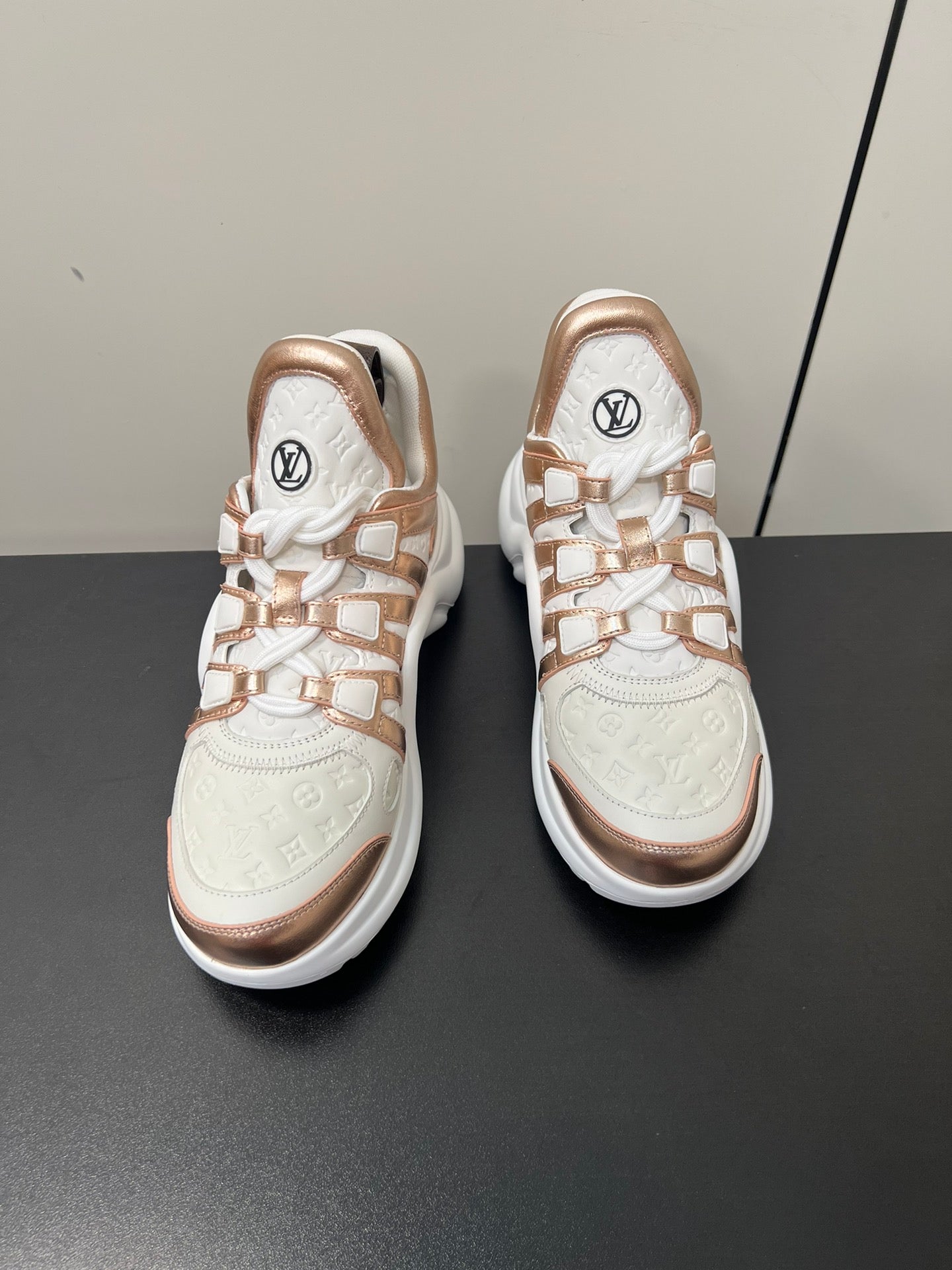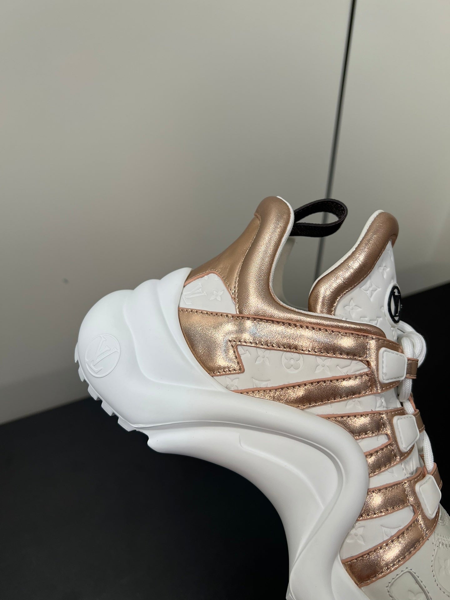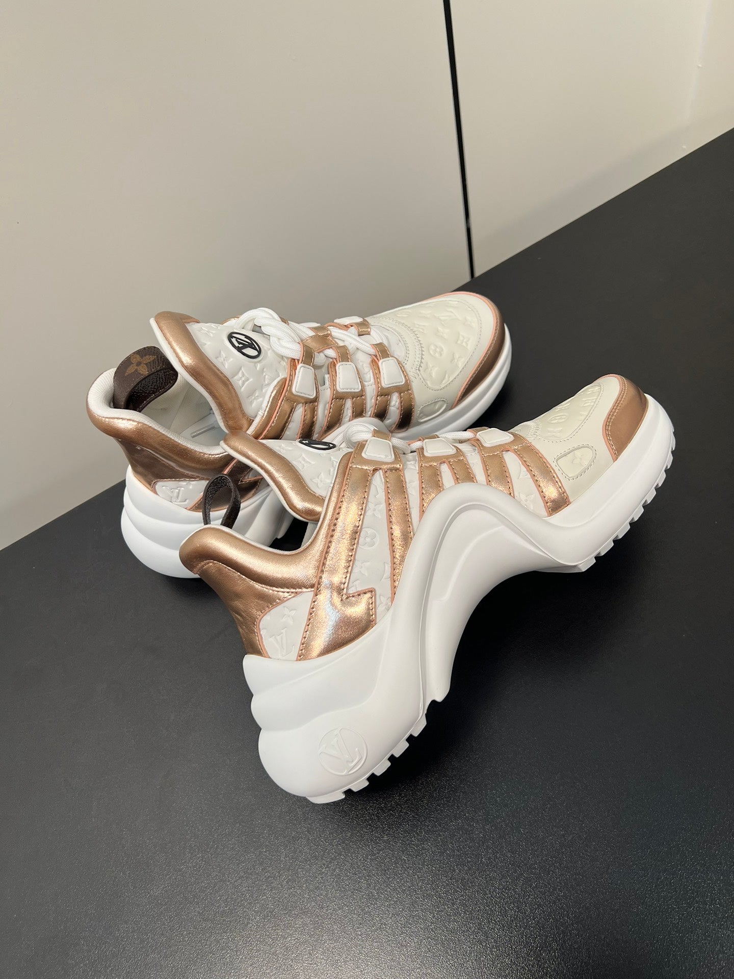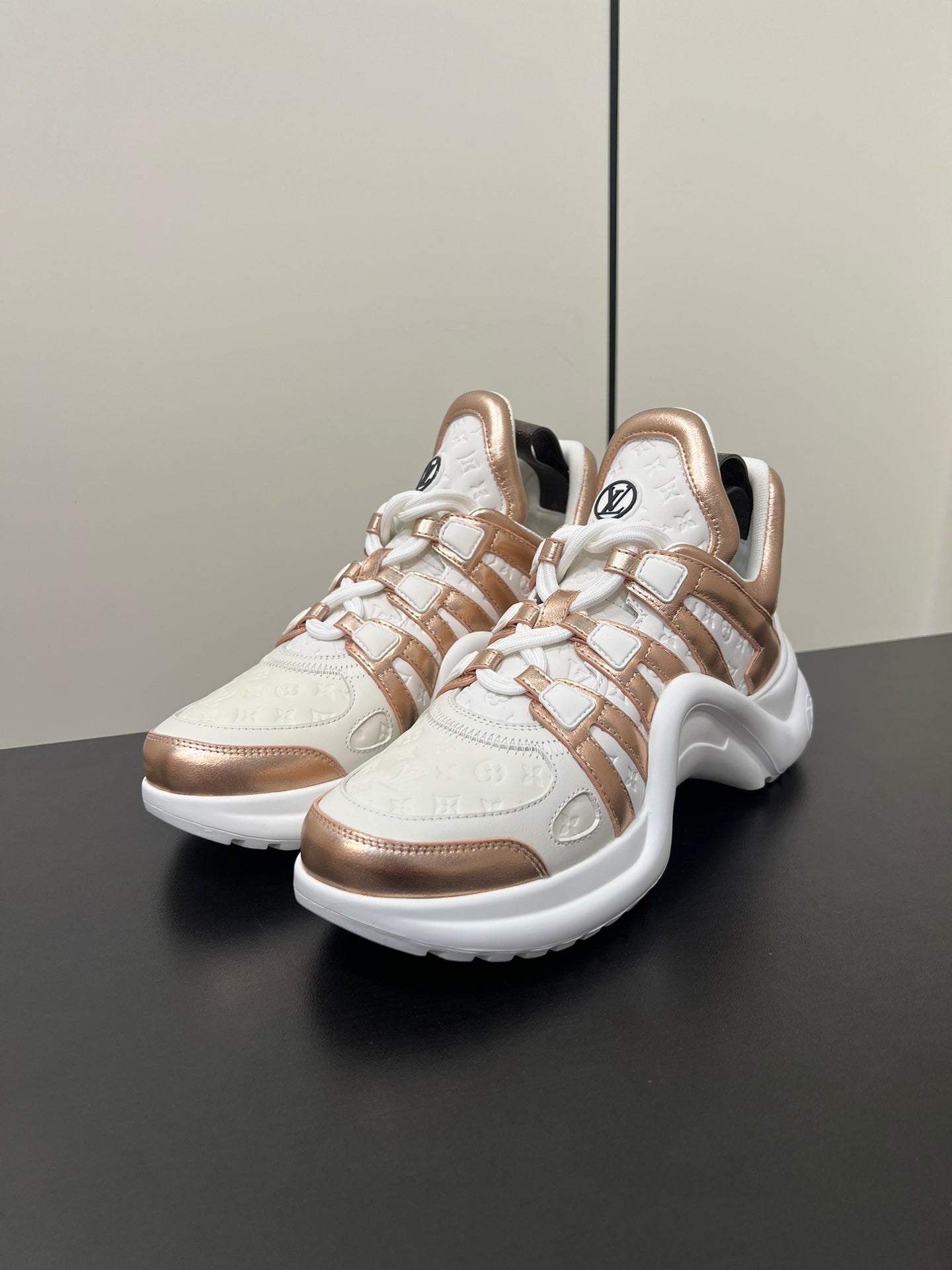 LV Archlight Sneaker 50mm White Mix Metallic Bronze Monogram Cowhide