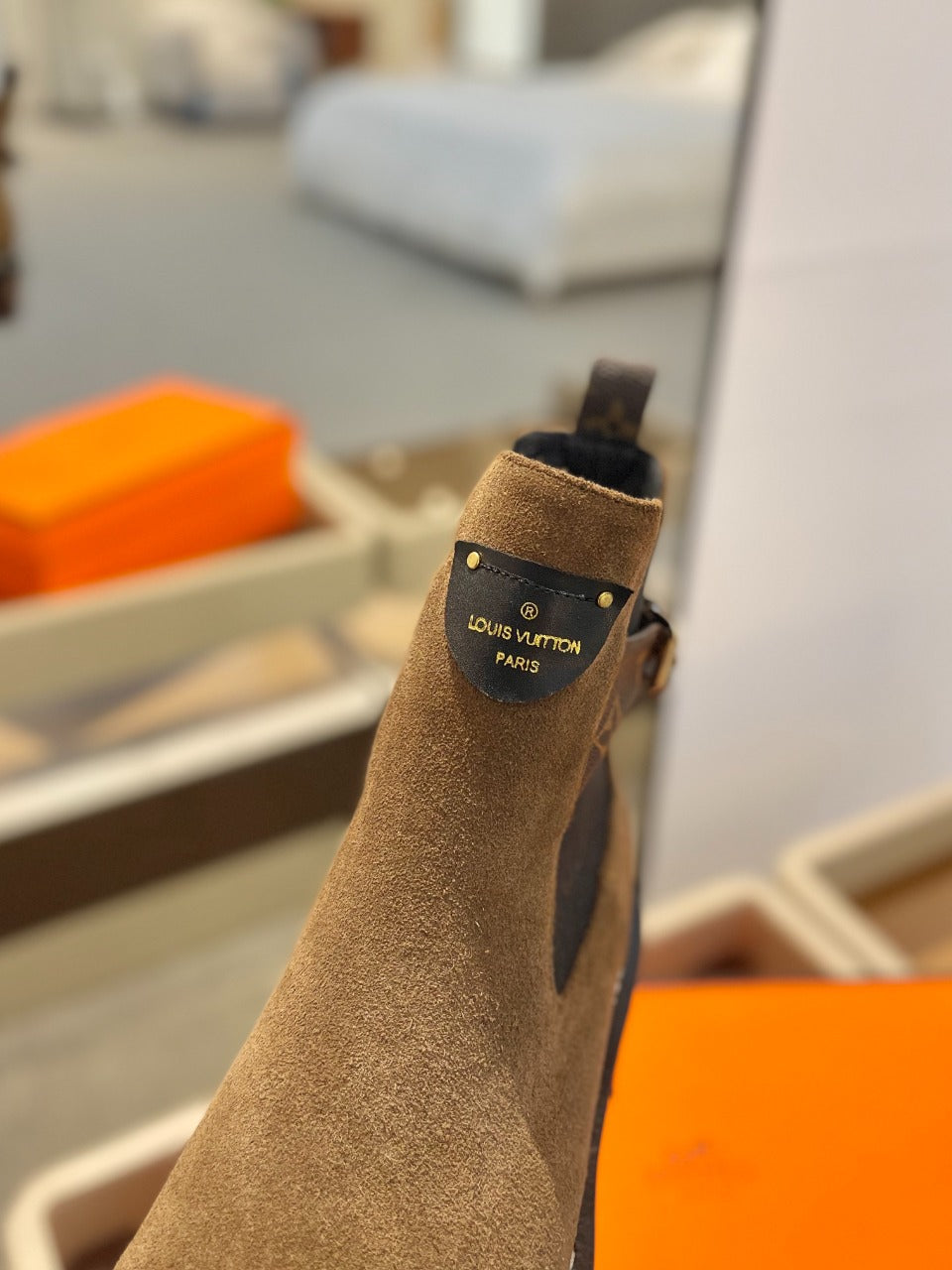 LV Beaubourg Ankle Boot 100mm Brown Yellow Suede