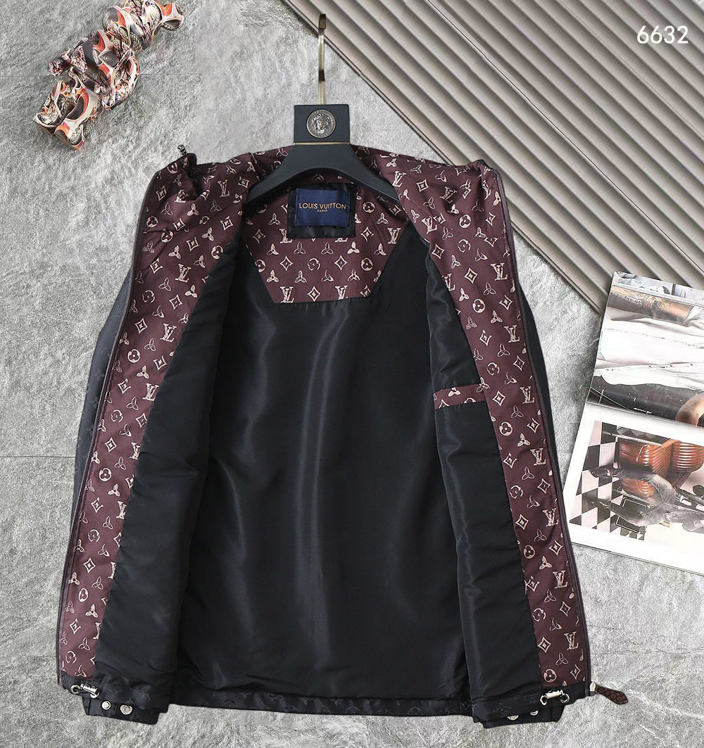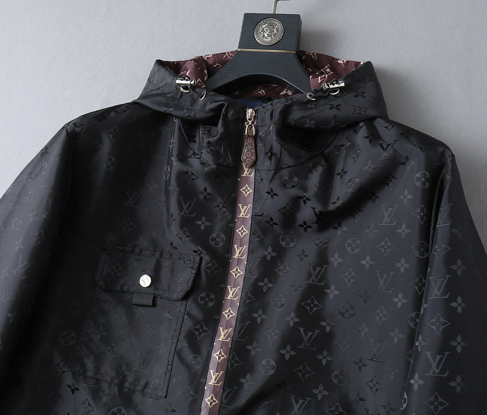 LV BLACK AND WINE RED TRIM MONOGRAM HOODED JACKET 238984