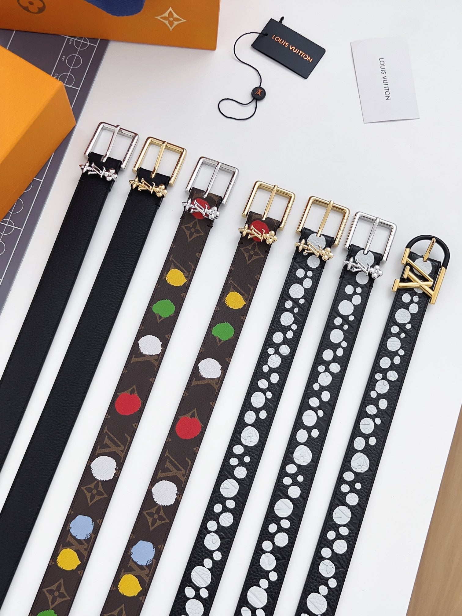 LV Bloom 30mm Belt Silver Buckle Black White Leather