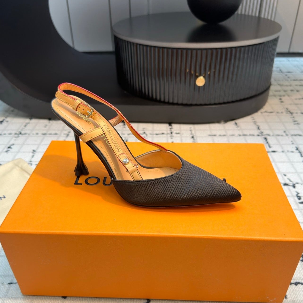 LV Blossom Slingback Pump 95mm Black Lambskin
