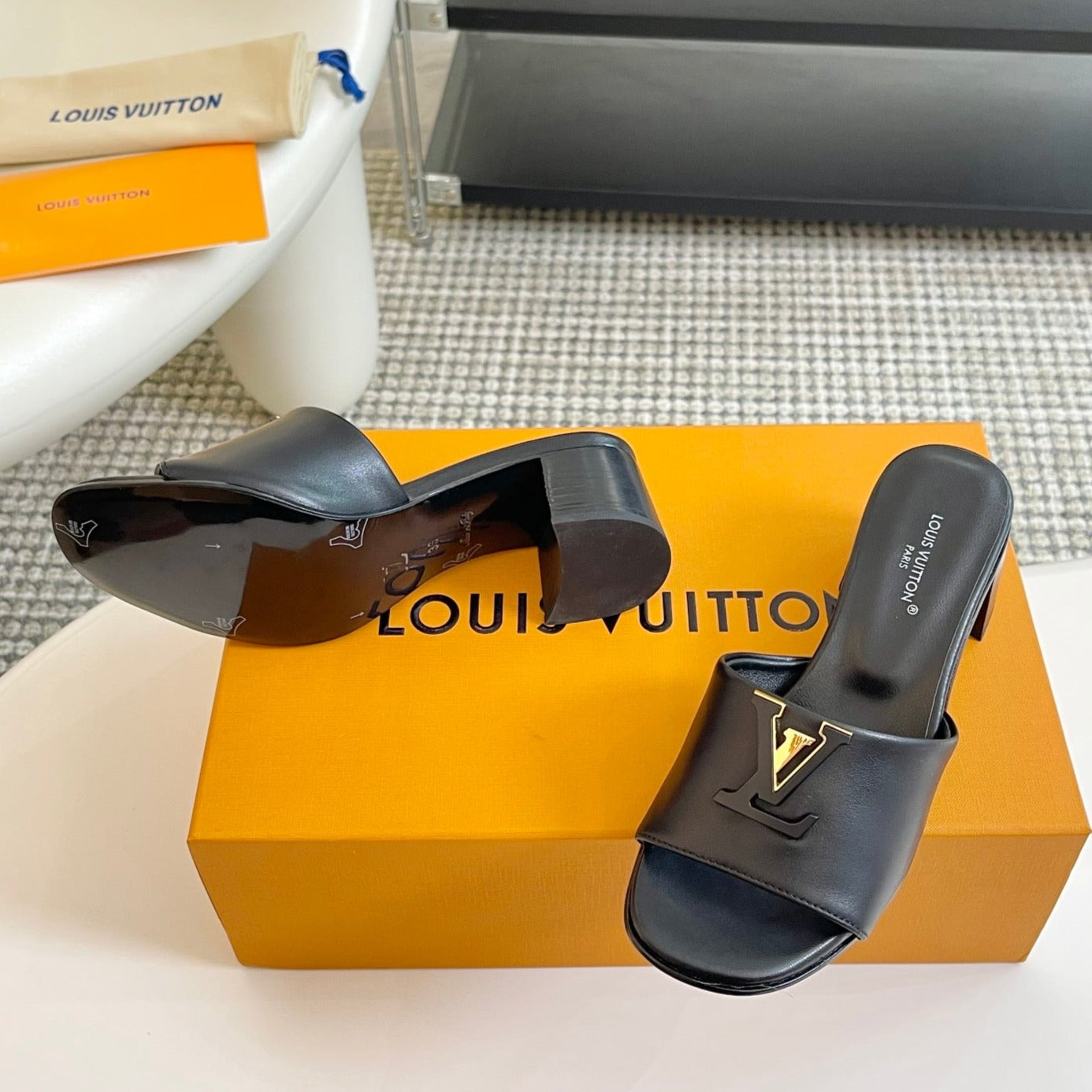 lv capri mule 45mm black calfskin