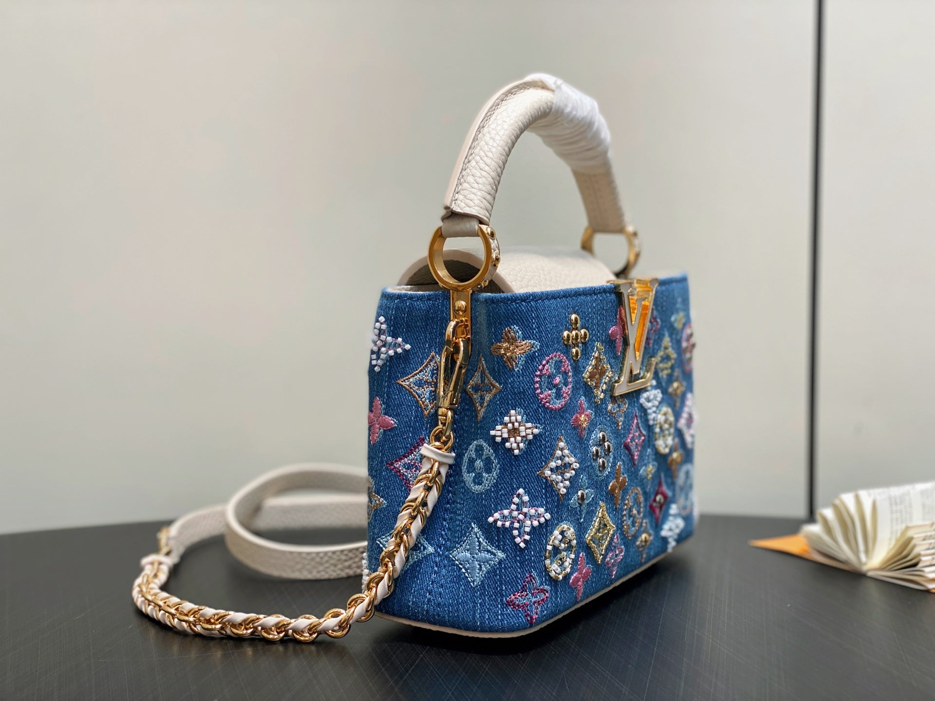 LV Capucines 21cm Bag Blue mix Colors Denim Leather 338217