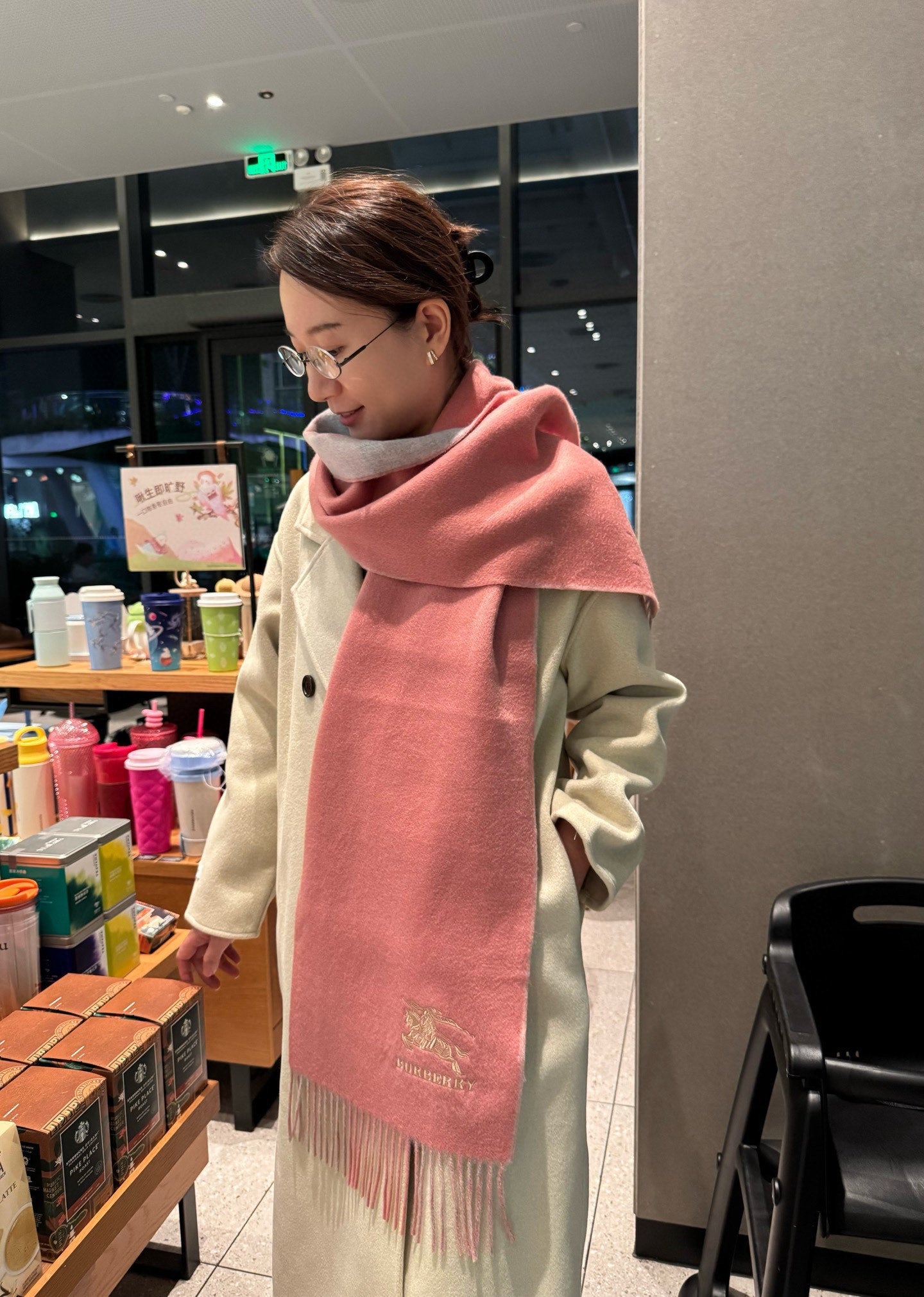 BBR Classic Embroidered Scarf 185CM Pink Cashmere 292803
