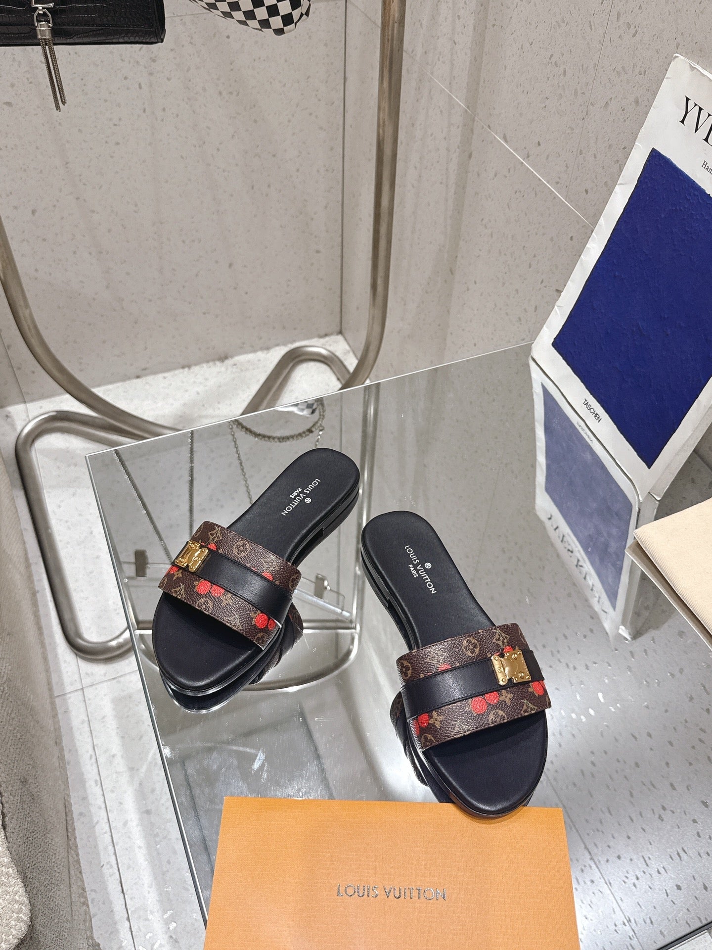 LV Flat Mules pairs raffia black brown monogram cowhide 383721