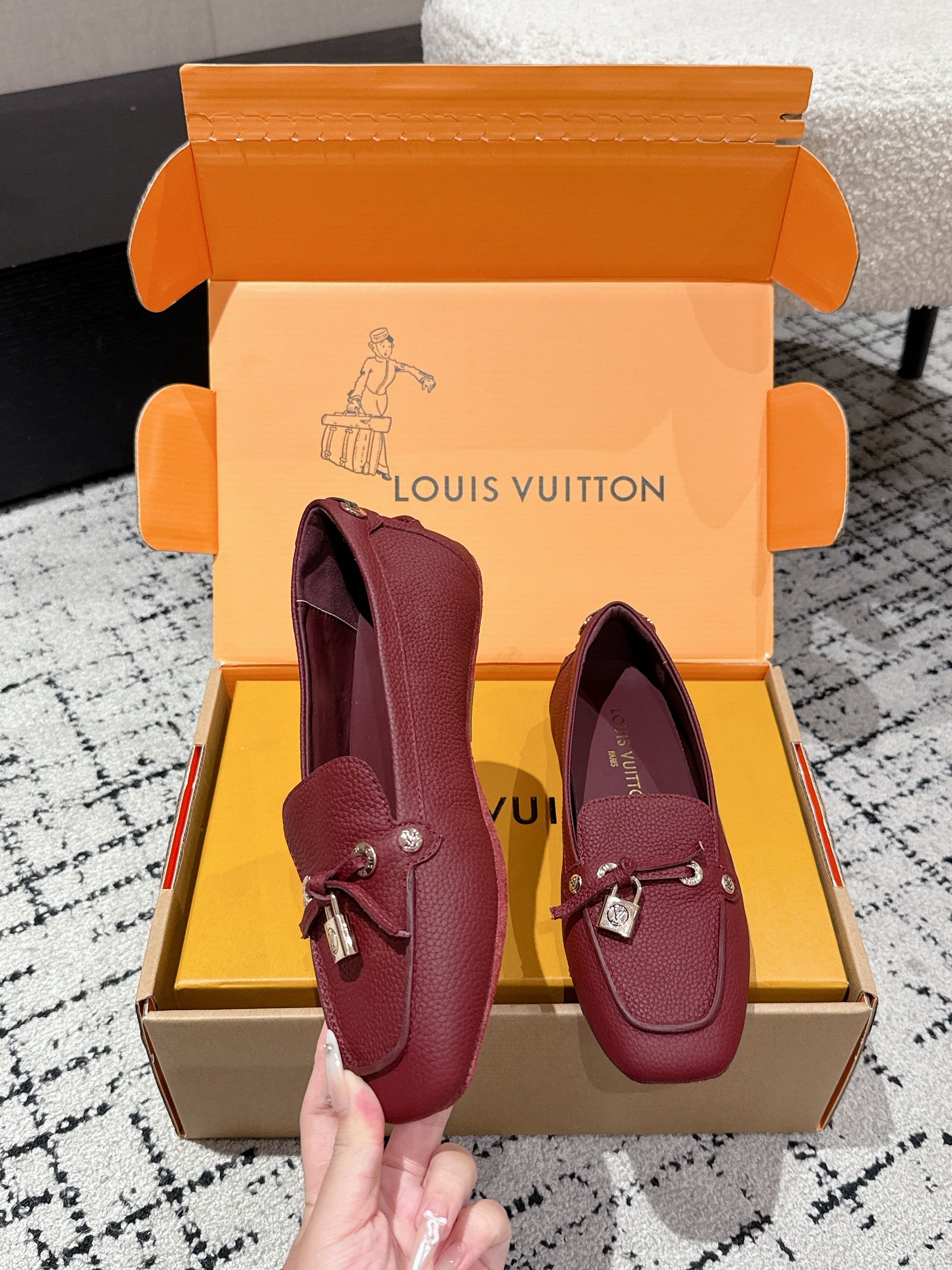 LV Flat-soled lock loafers burgundy cowhide 383376