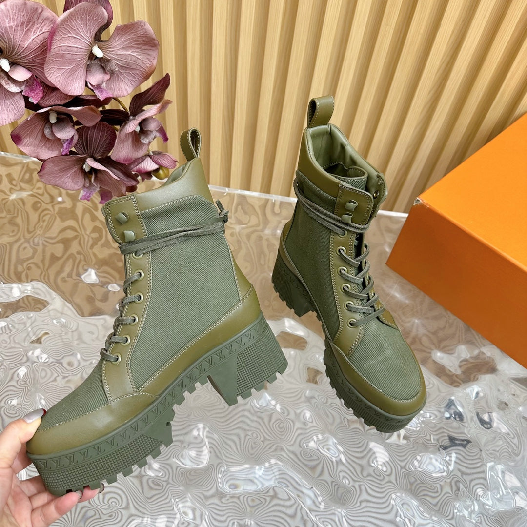 LV Laureate Platform Desert Boot 70mm Khaki Green Denim Fabric