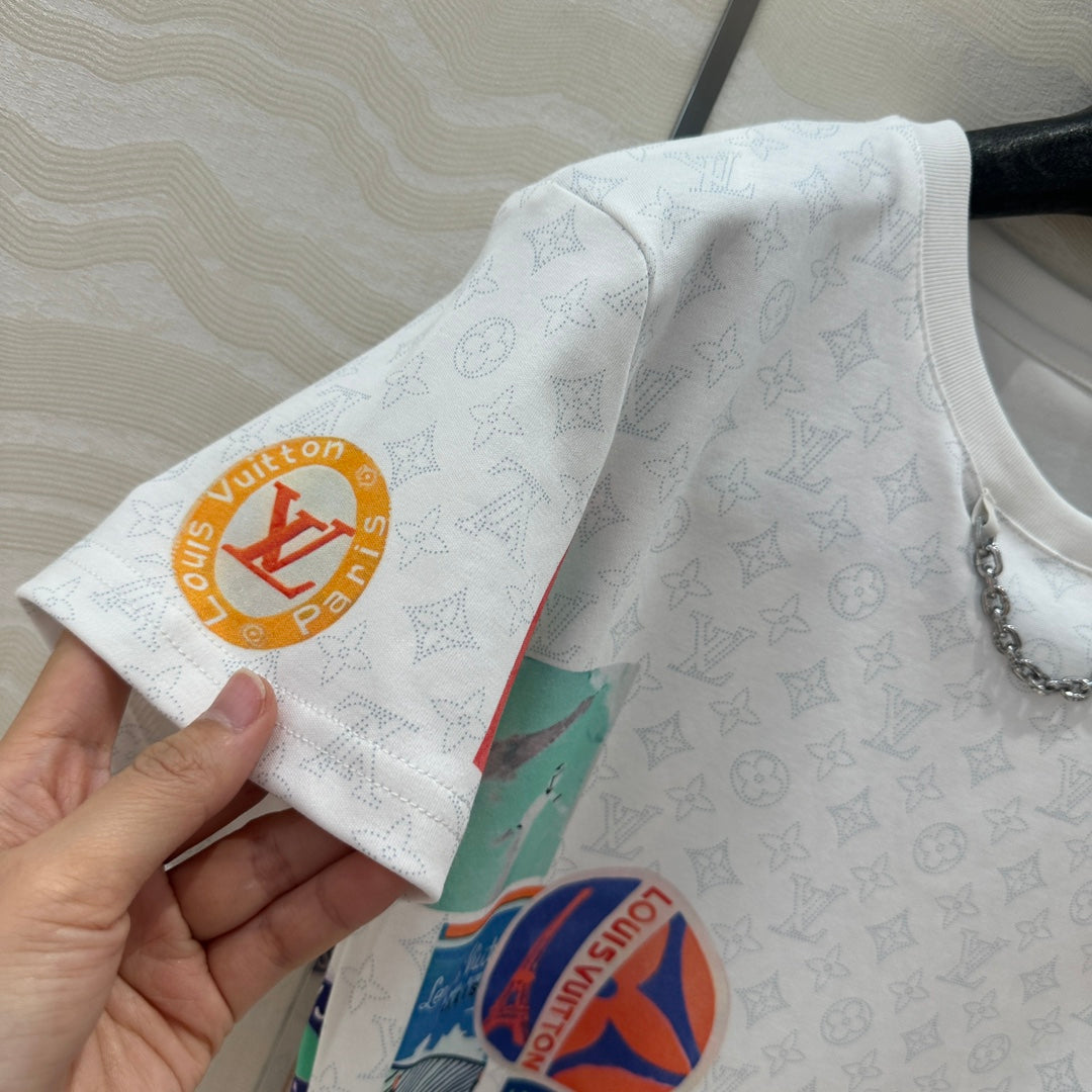 LV Pattern Logo Positioning Poster Badge Printed Croptop Shirt White Cotton