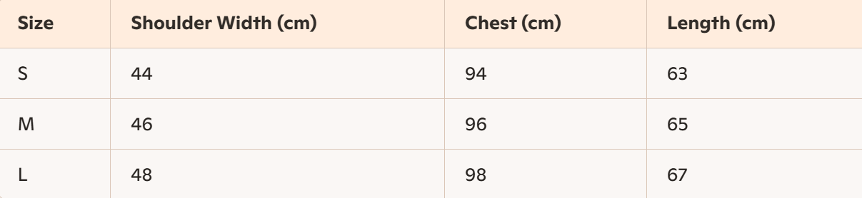 - Size : S, M,L