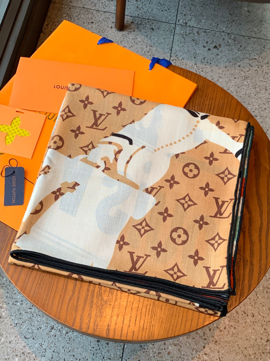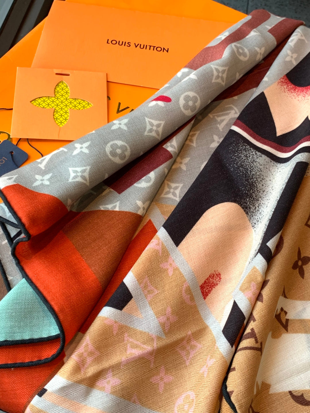 LV Scarf 135cm Brown Multicolor Cashmere Mulberry Silk 976759