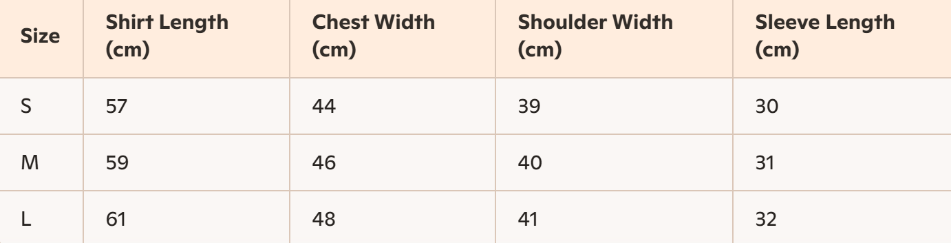 - Size: S, M, L