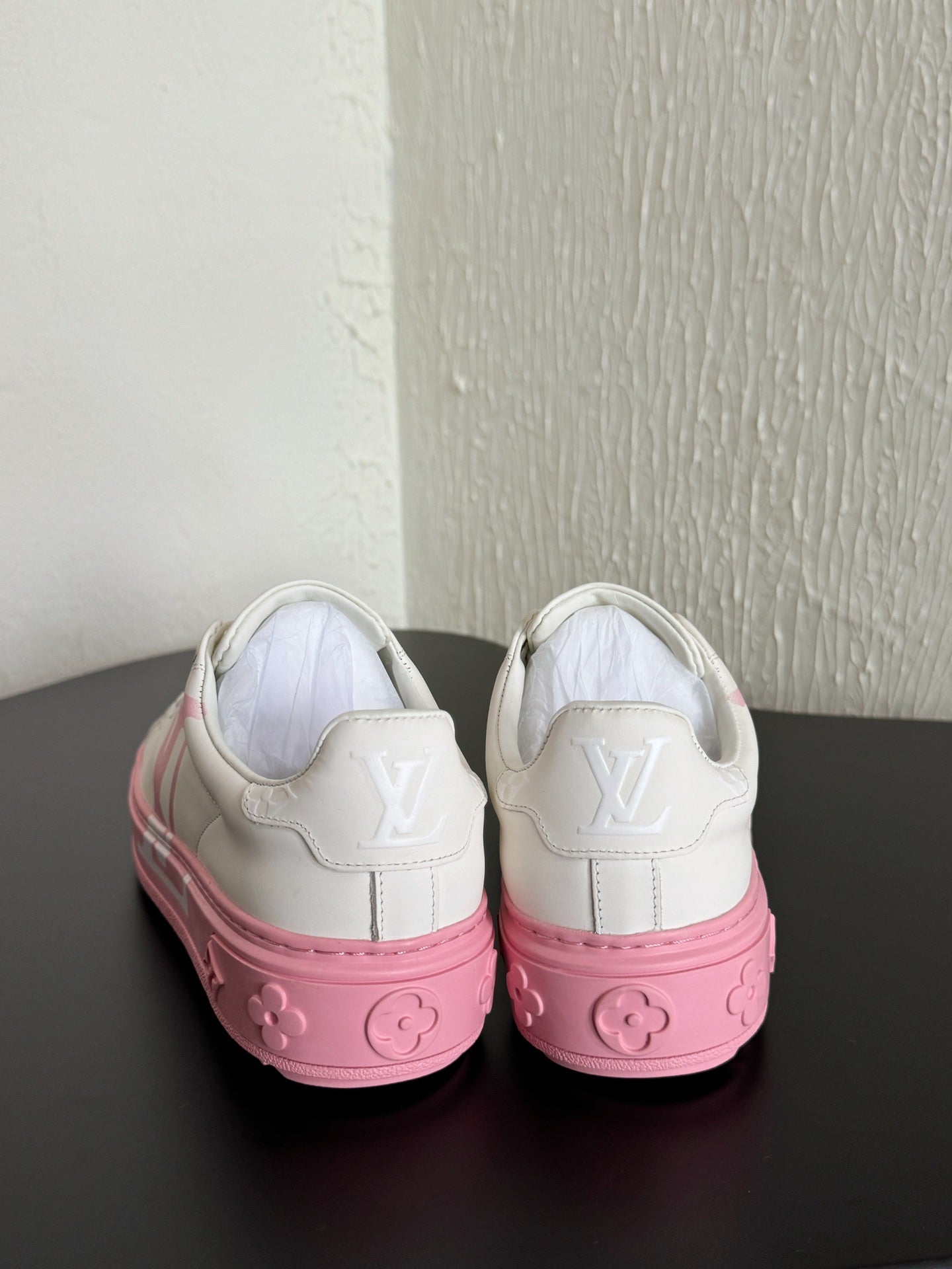 LV Sneakers Time Out Logo Print White Mix Pink Calfskin