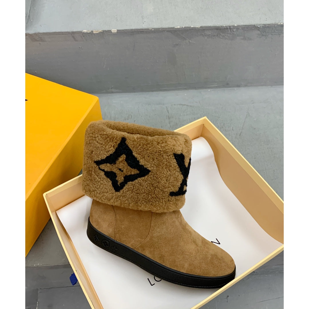 LV Snowdrop Flat Ankle Boot Brown Monogram Black Suede