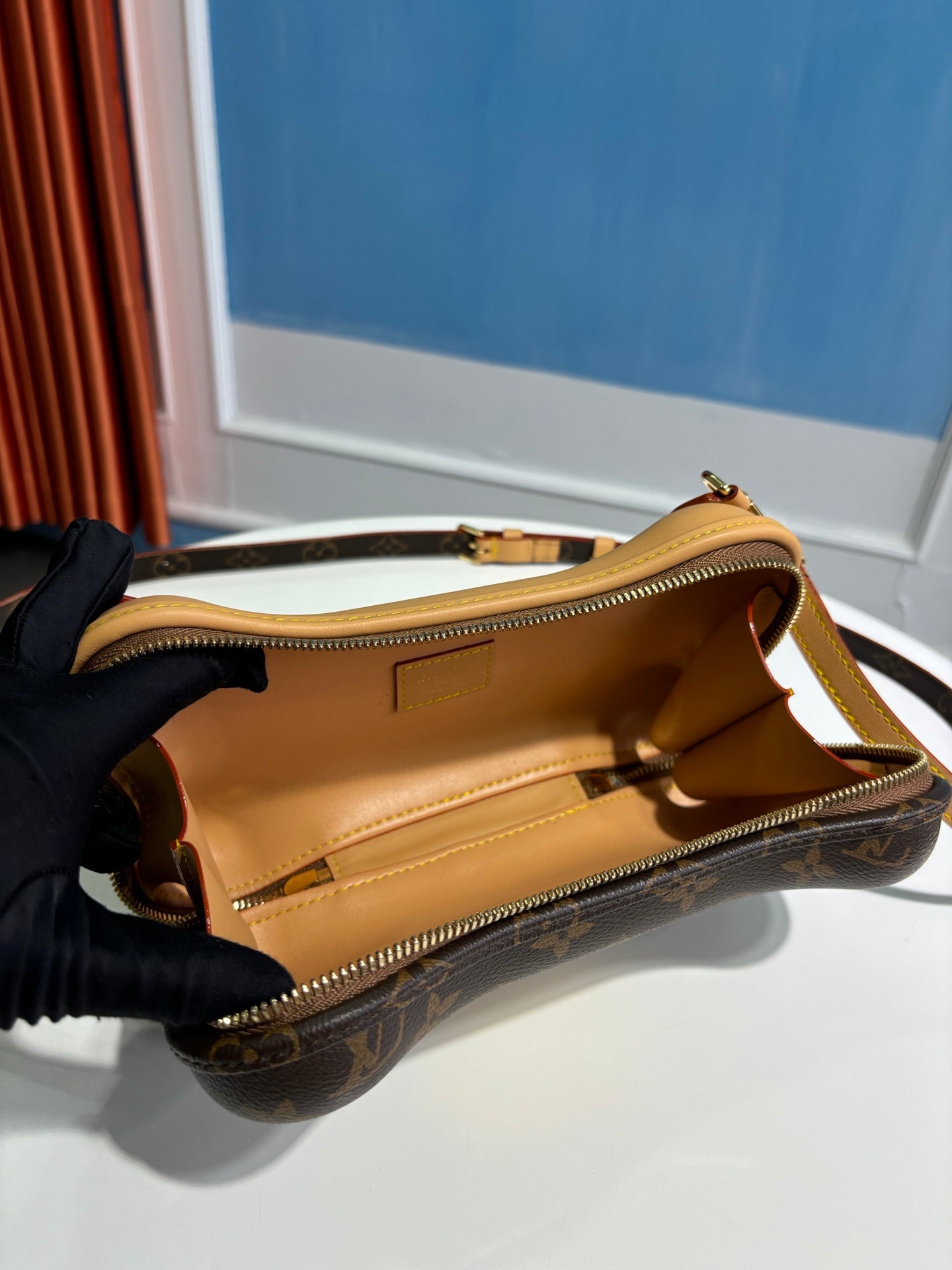 - Gold-tone hardware