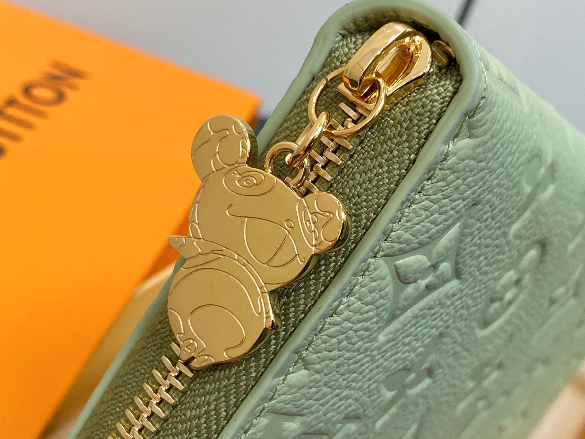 LV × TM Zipper Wallet Green Gold Leather 329877