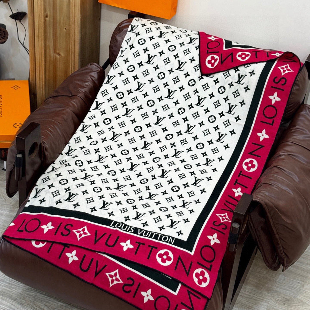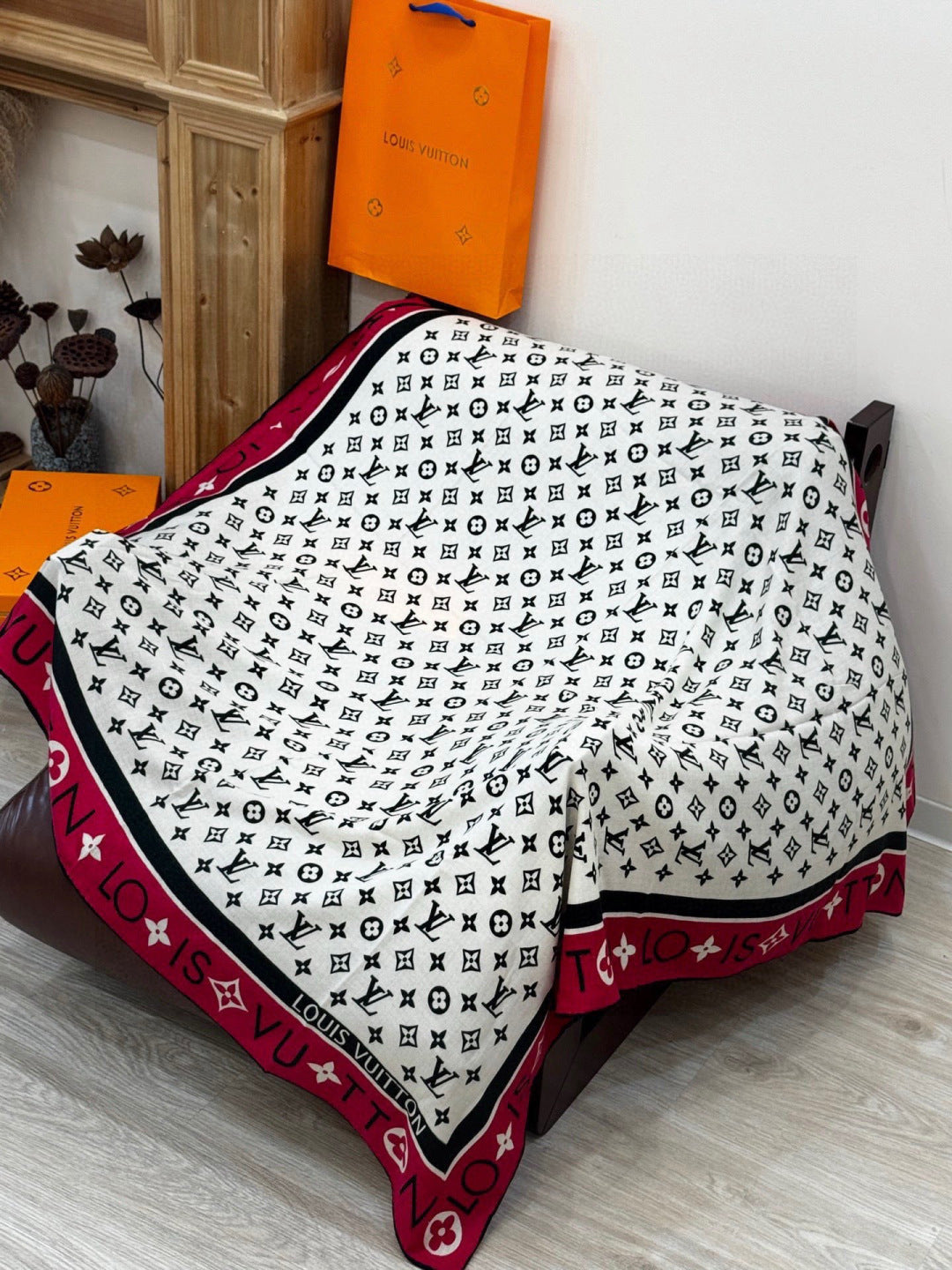 LV Velvet Square Scarf 135cm White Pink Cashmere 970944