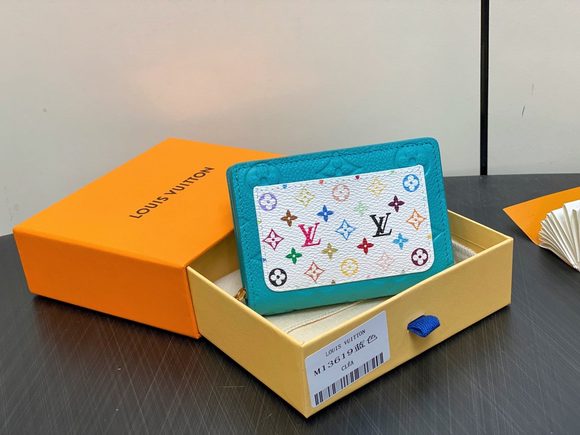 LV x TM Portfolio Claire Blue Gold Leather 329917