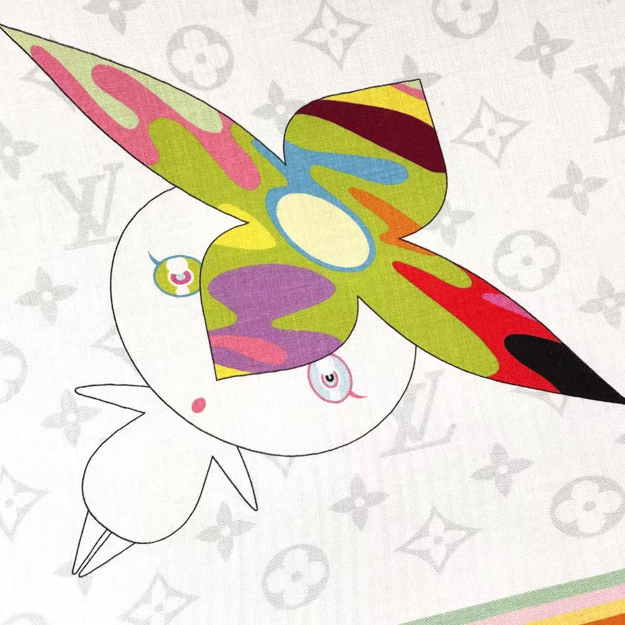 LV x TM SUPERFLAT 140cm White Multicolor Silk Wool 978742