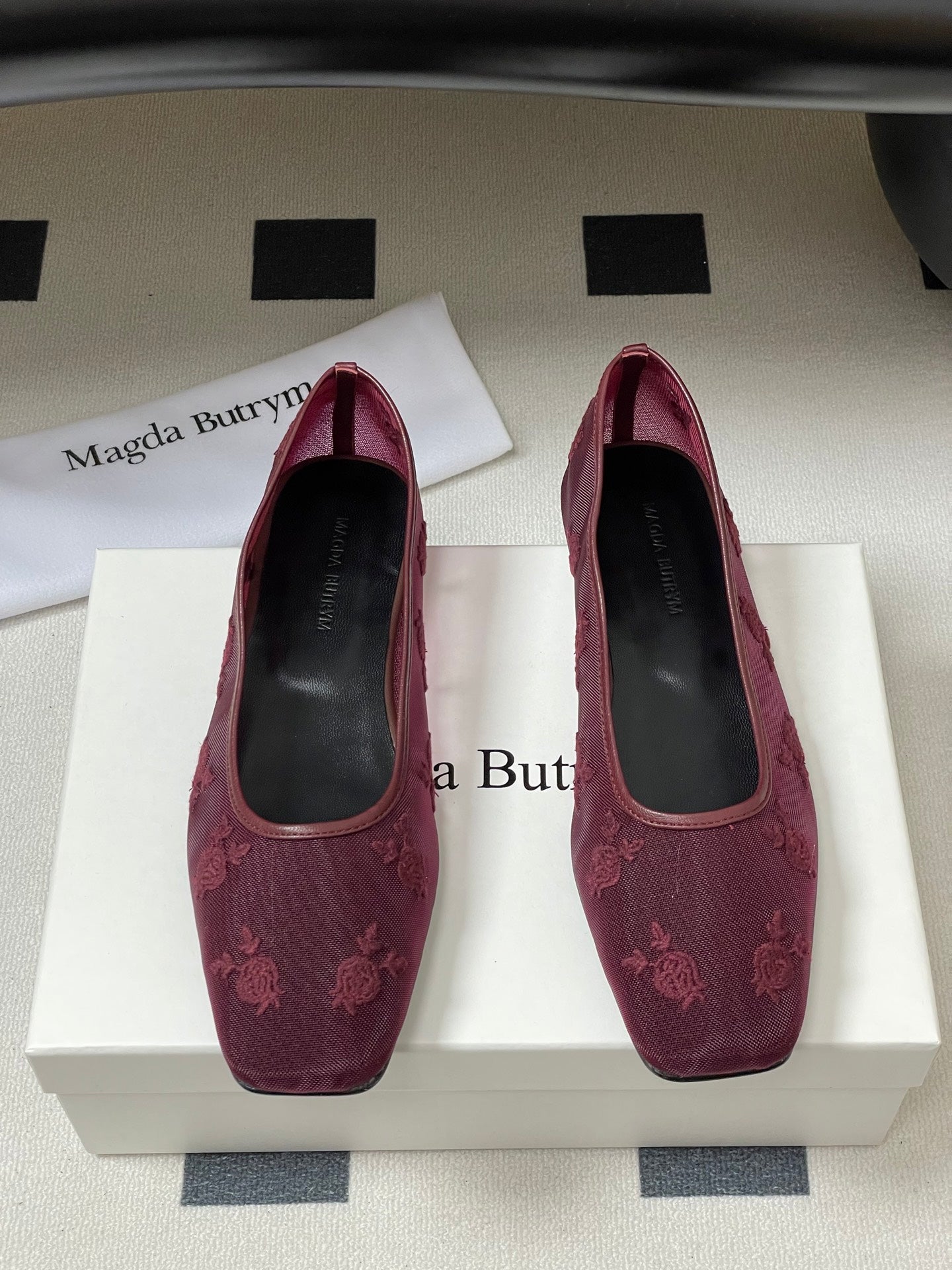 Manolo 25 Ballet Flats Red Mesh Fabric 319740