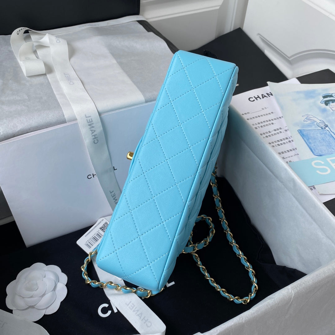 Medium Classic Flap Bag 23cm Blue Sky Lambskin Gold Hardware