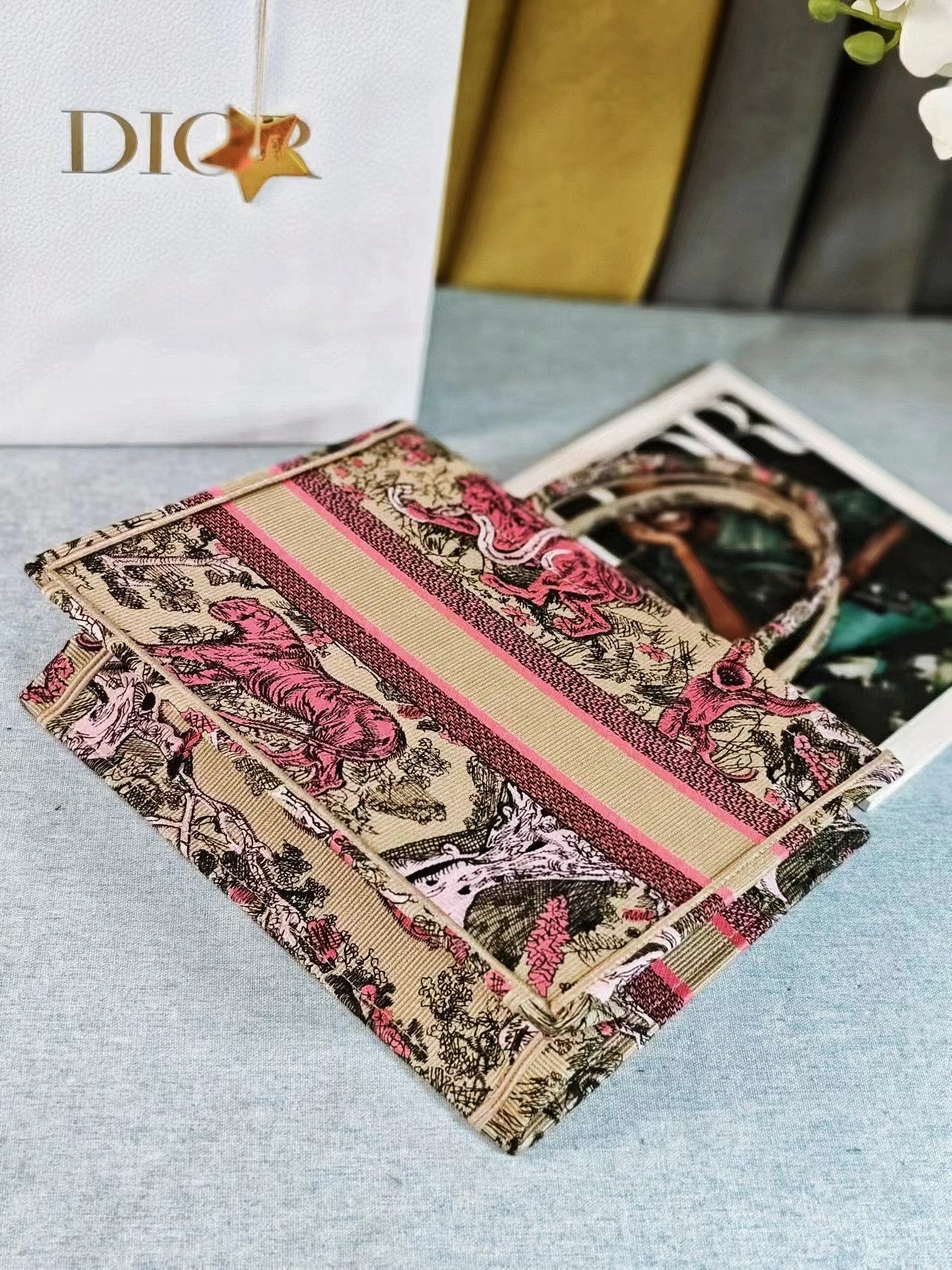 medium dioriviera 36 pink beige tiger embroidery canvas