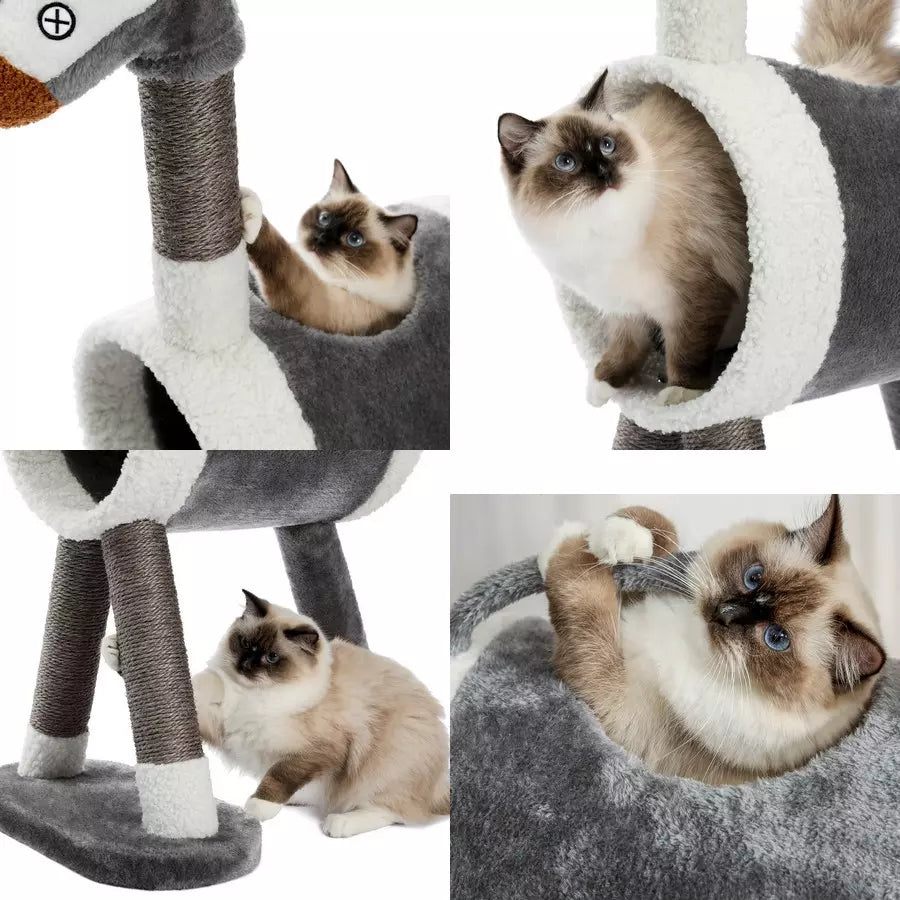 Avec plusieurs poteaux à gratter, des plateformes, une queue pompon, un tunnel pour se relaxer, il peut même convenir si vous avez plusieurs chats.