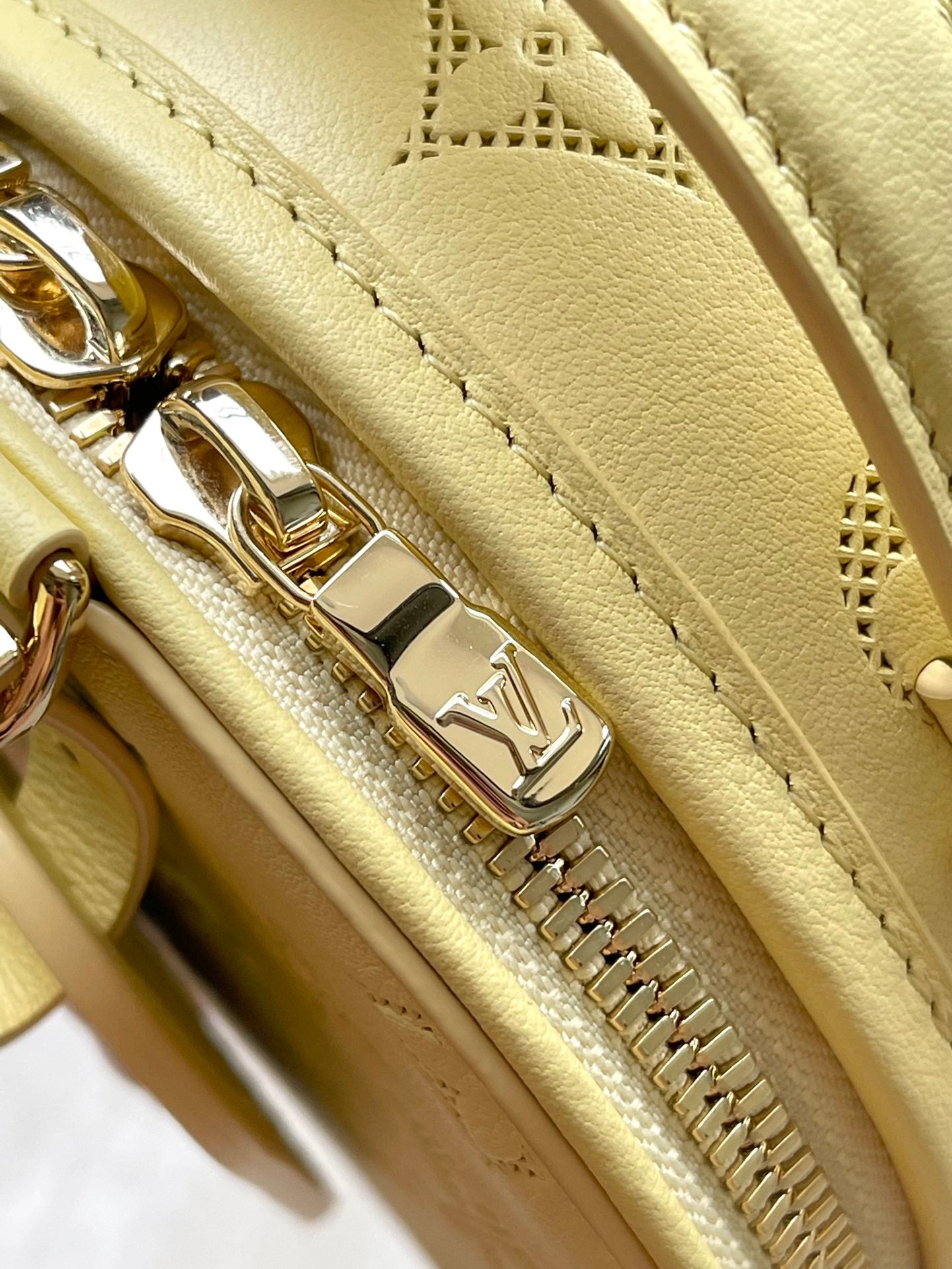 MINI BOITE CHAPEAU 13 IN BANANA YELLOW MONOGRAM PERFORATED CALFSKIN