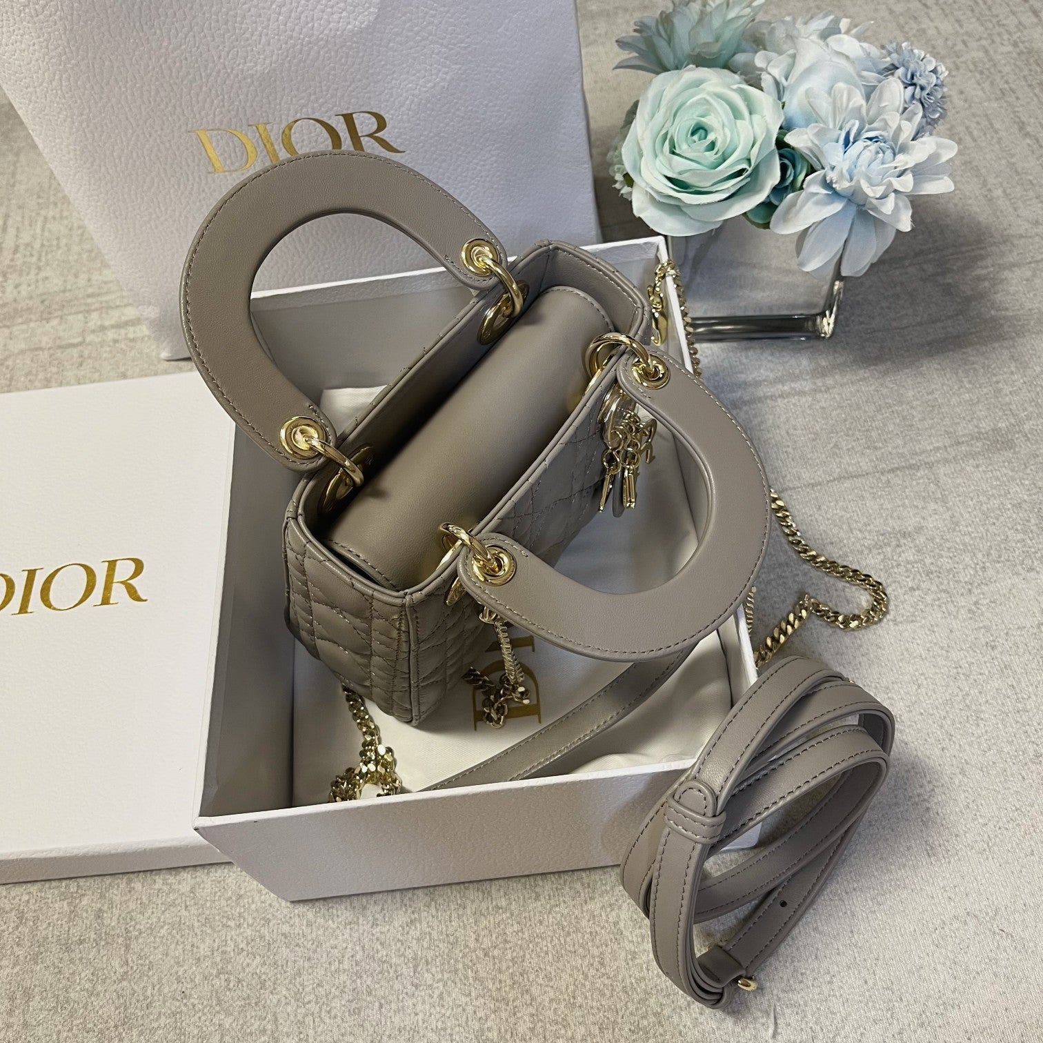 mini lady 17 brown grey lambskin
