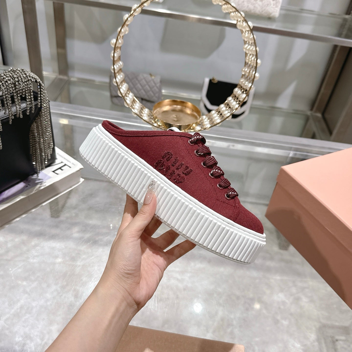 Miu 25C Sneaker Mules Maroon Red Demin Fabric 235318