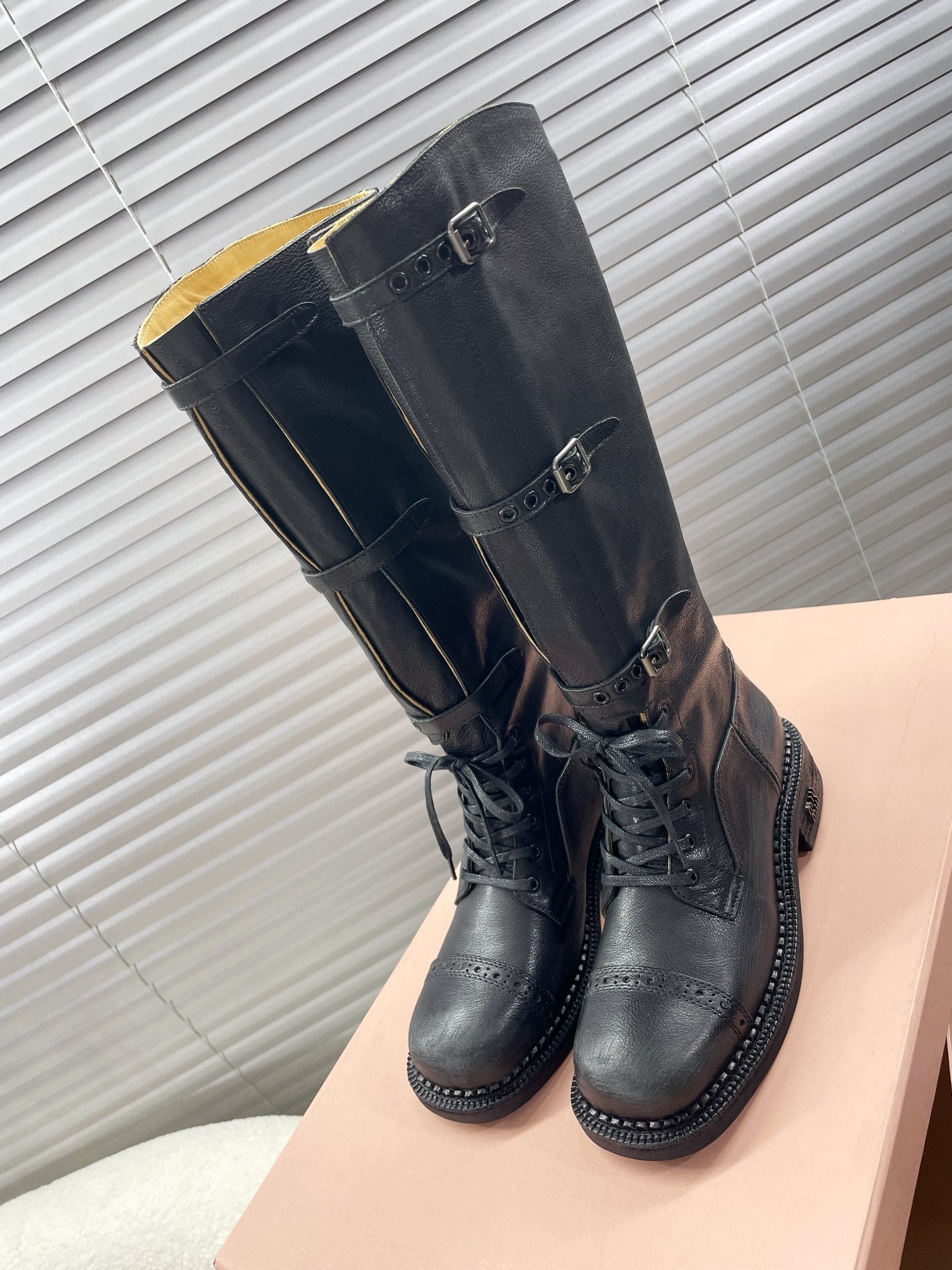 Miu High Boots Black Calfskin