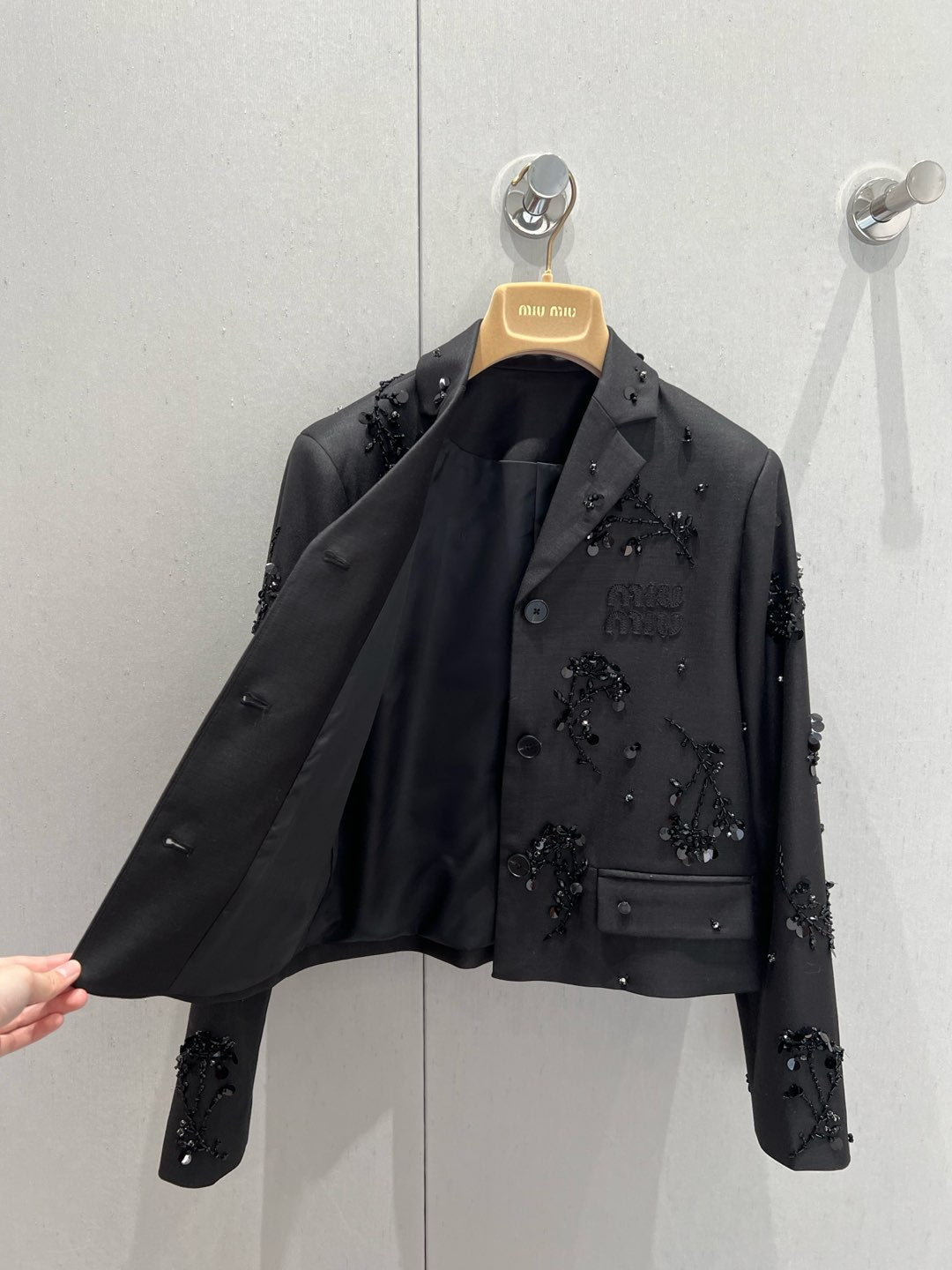 Miu Miu Short Suit Jacket Black Chemical Fiber