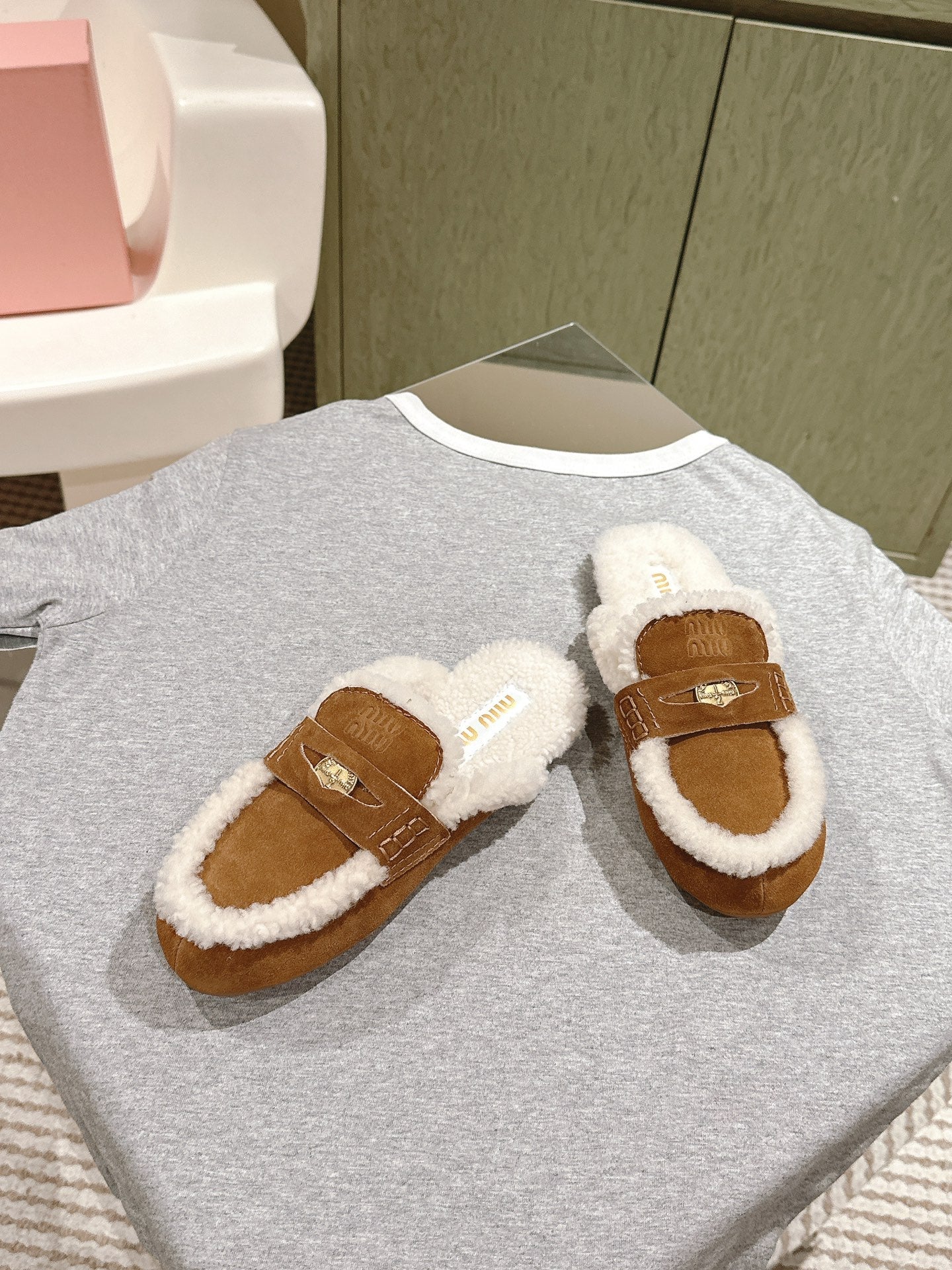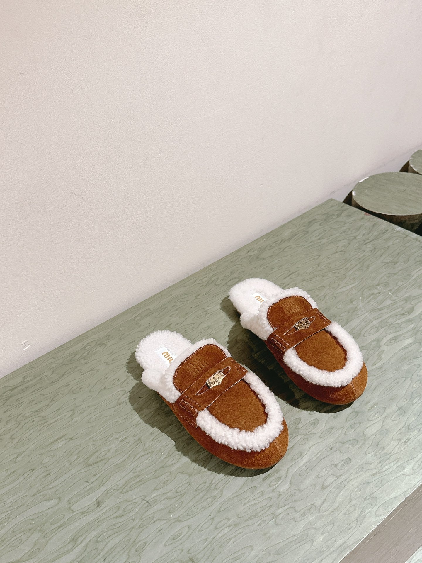 Miu Mule Half Fur Caramel Suede