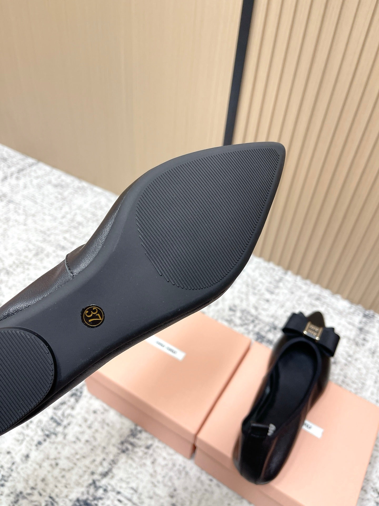 Miu Pointed-Toe Ballet Flats Black Sheepskin 591561