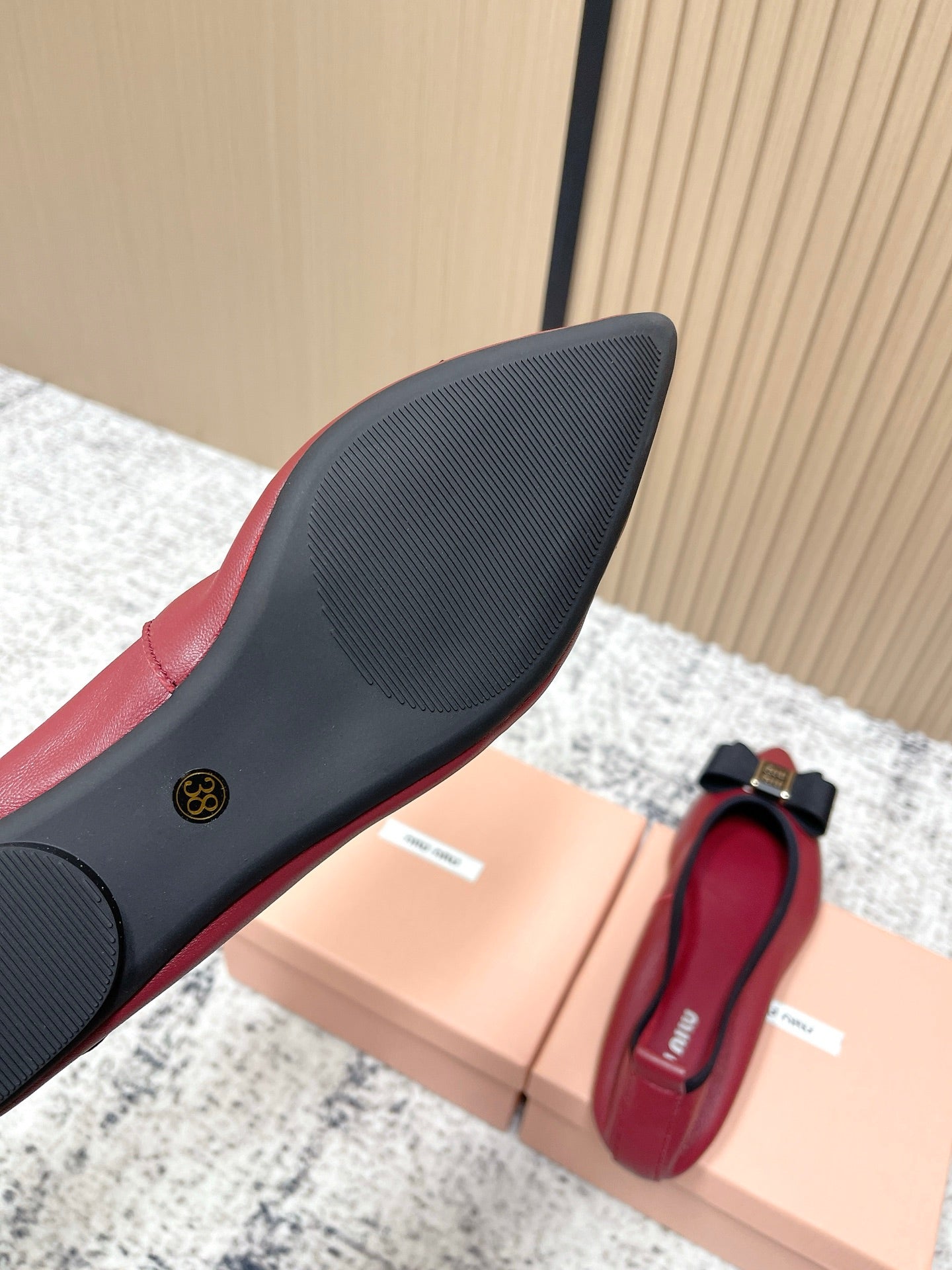 Miu Pointed-Toe Ballet Flats Dark Red Sheepskin 591564